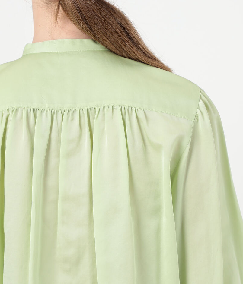 良質な細番手の糸を使用した〈Ballsey〉定番のコットンシルクサテン素材を使用したブラウス。