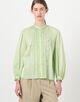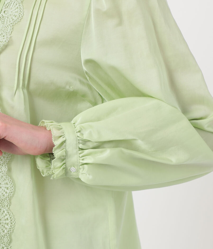 コットンシルクサテン タック&レースブラウス