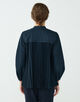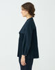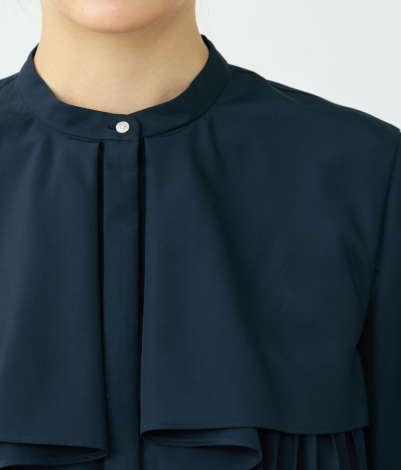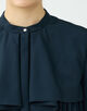 しっとりとした光沢とほど良いハリのあるポリエステル素材を使用したブラウス。
