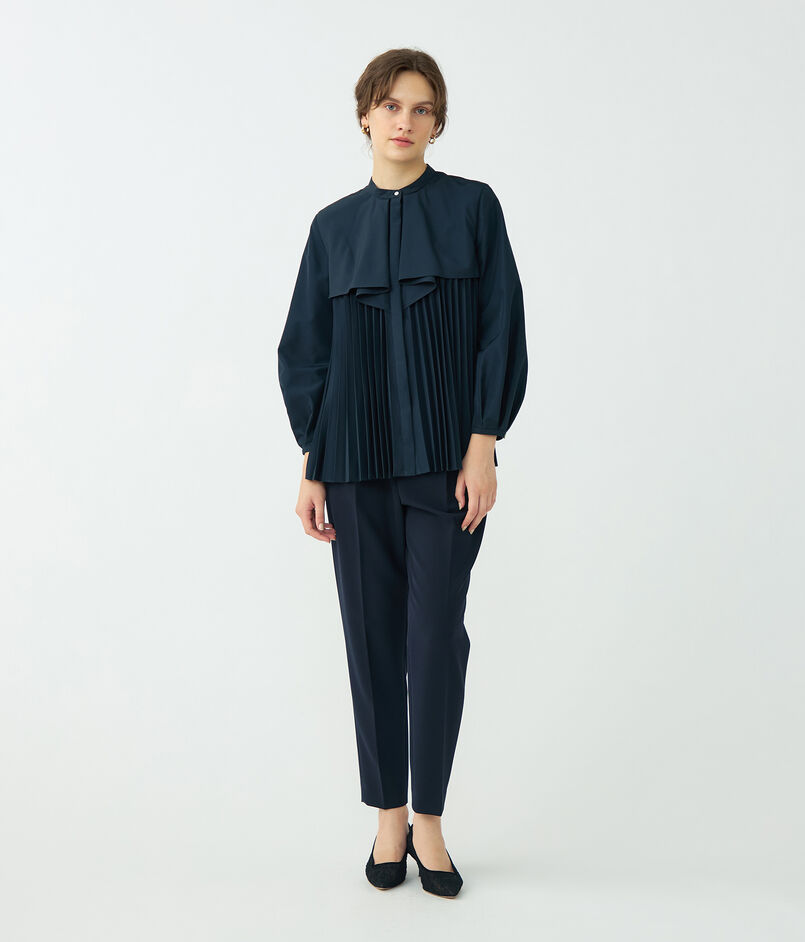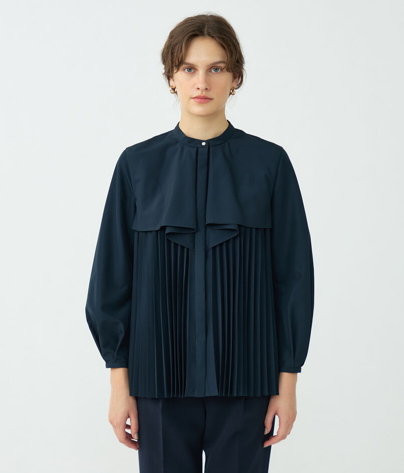 プリーツコンビ フロントドレープブラウス