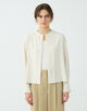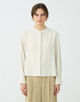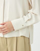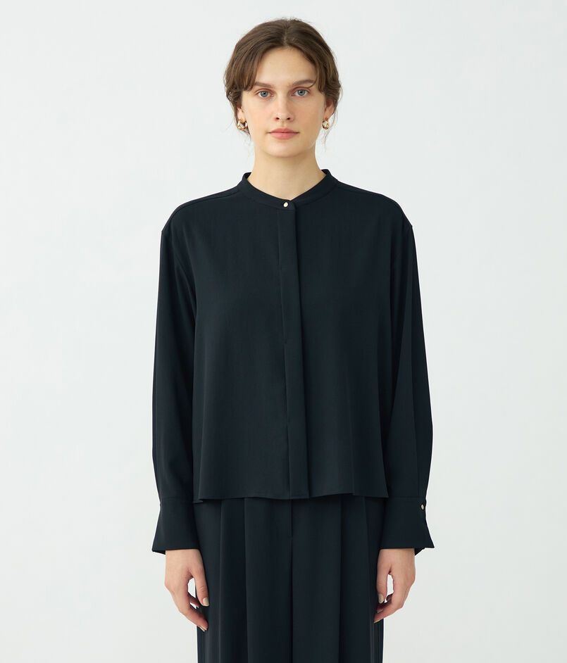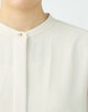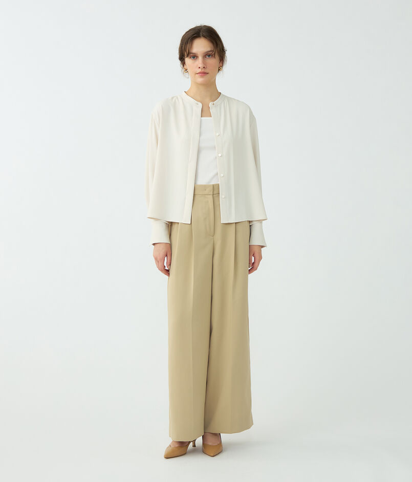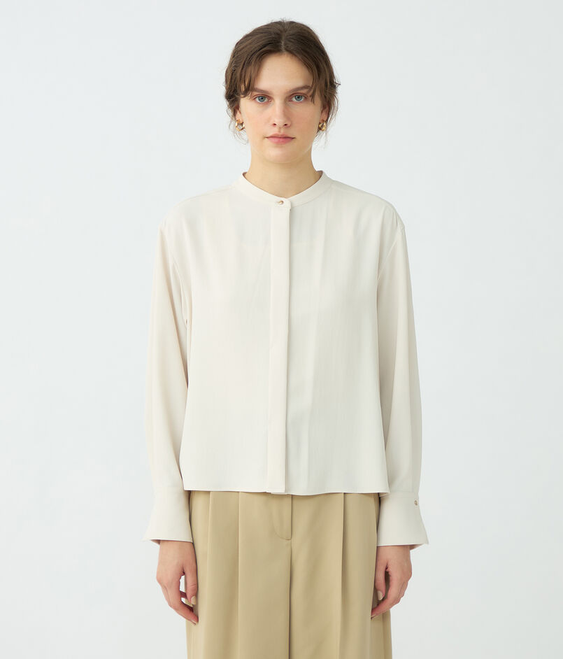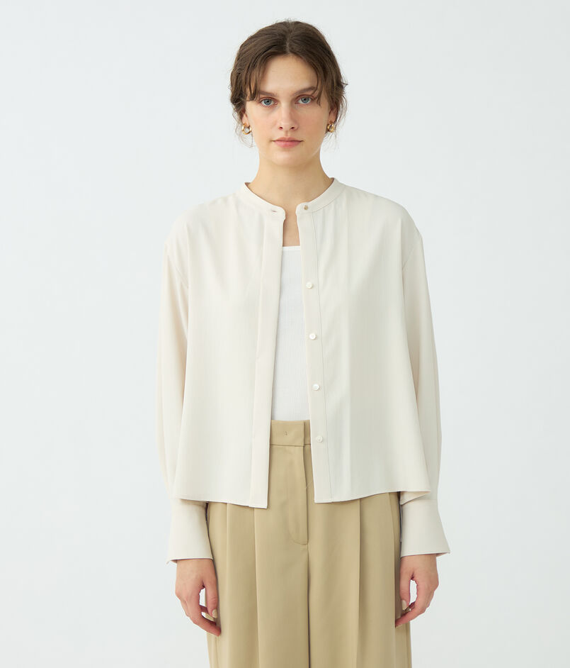 首元に沿うスタンドカラーにボックスシルエットでクリーンな印象に仕上げました。