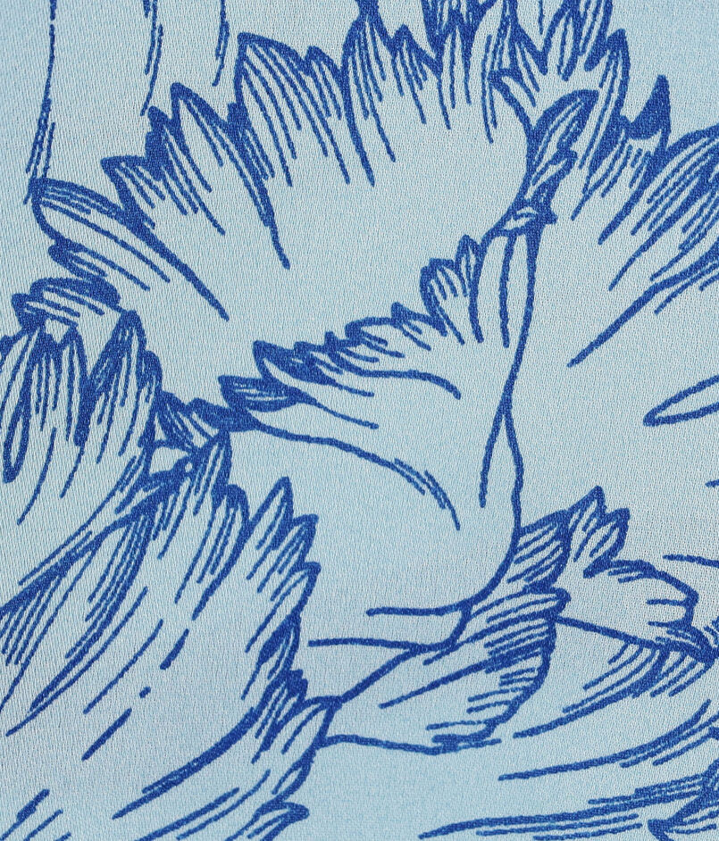 ”季節にとらわれない花々を一枚の絵に込めたい”という思いからスタートし、ガラスドームの中にコラージュ風に花々を閉じ込めたような表現のプリントに仕上げました。