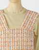ビスチェは甘めの素材感と直線的なスクエアネックの絶妙なバランスが魅力的な一枚。