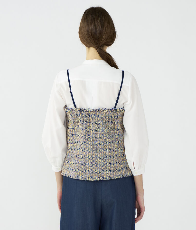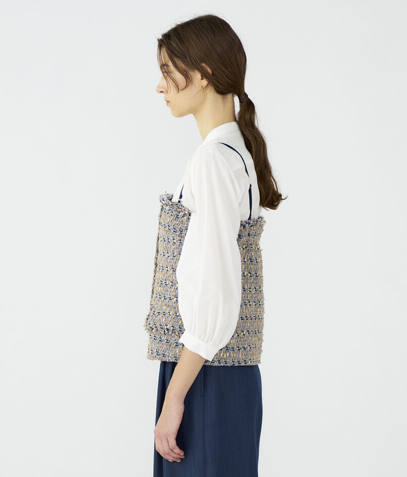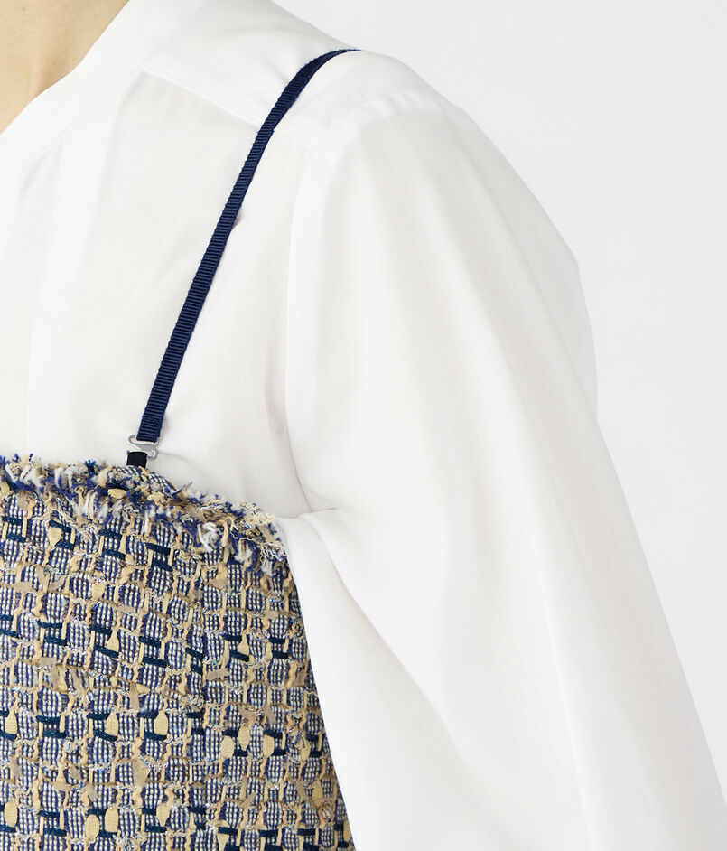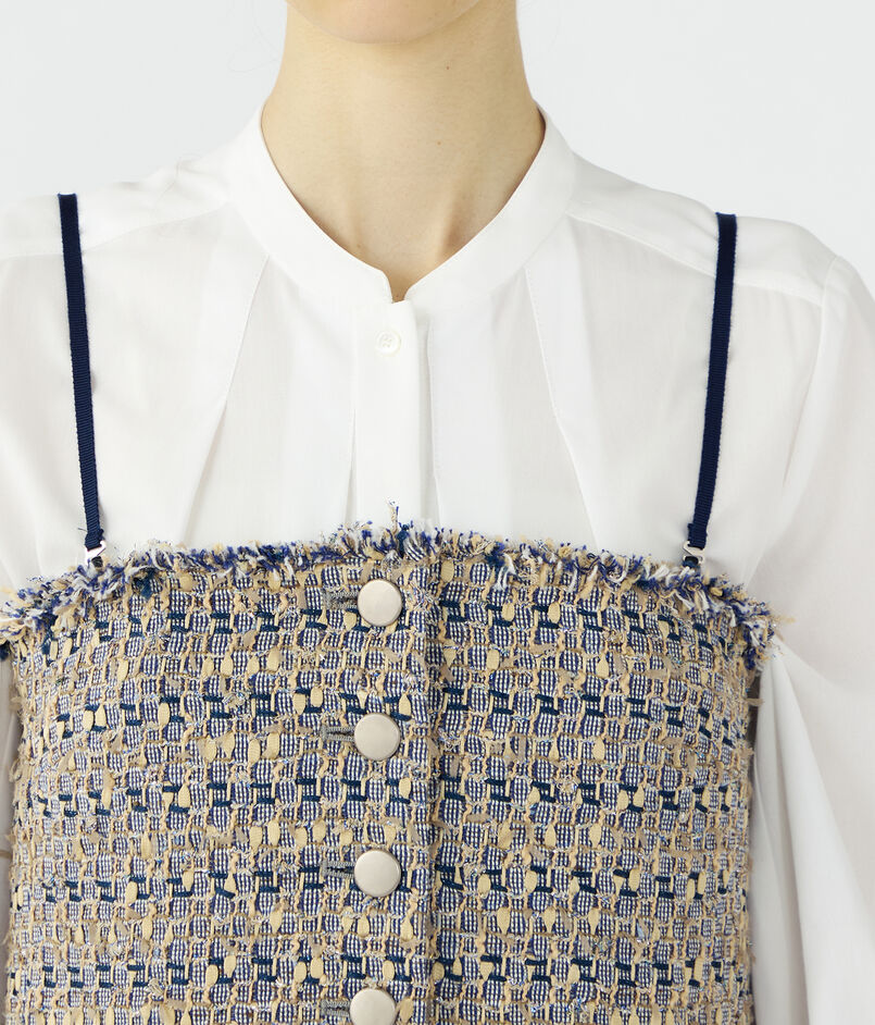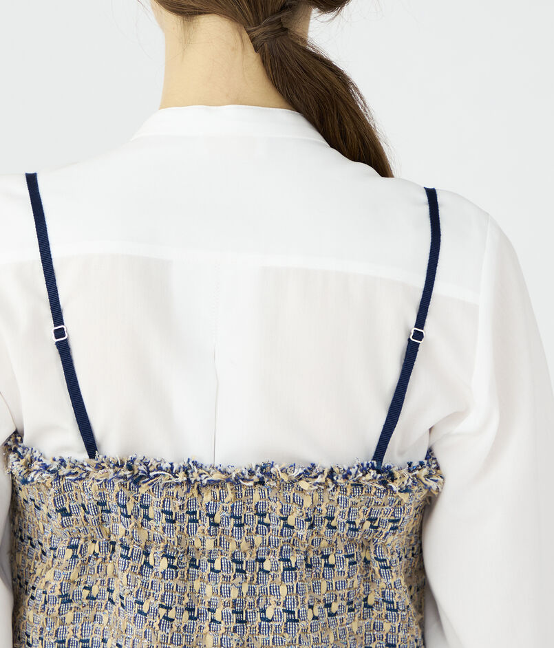 ブラウスやカットソーなどとのレイヤードはもちろん、ジャケットのインナーとしてアクセント使いするのもおすすめです。