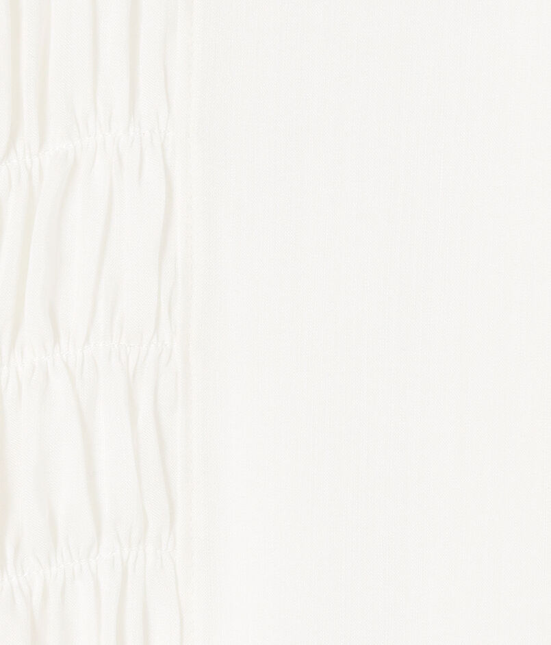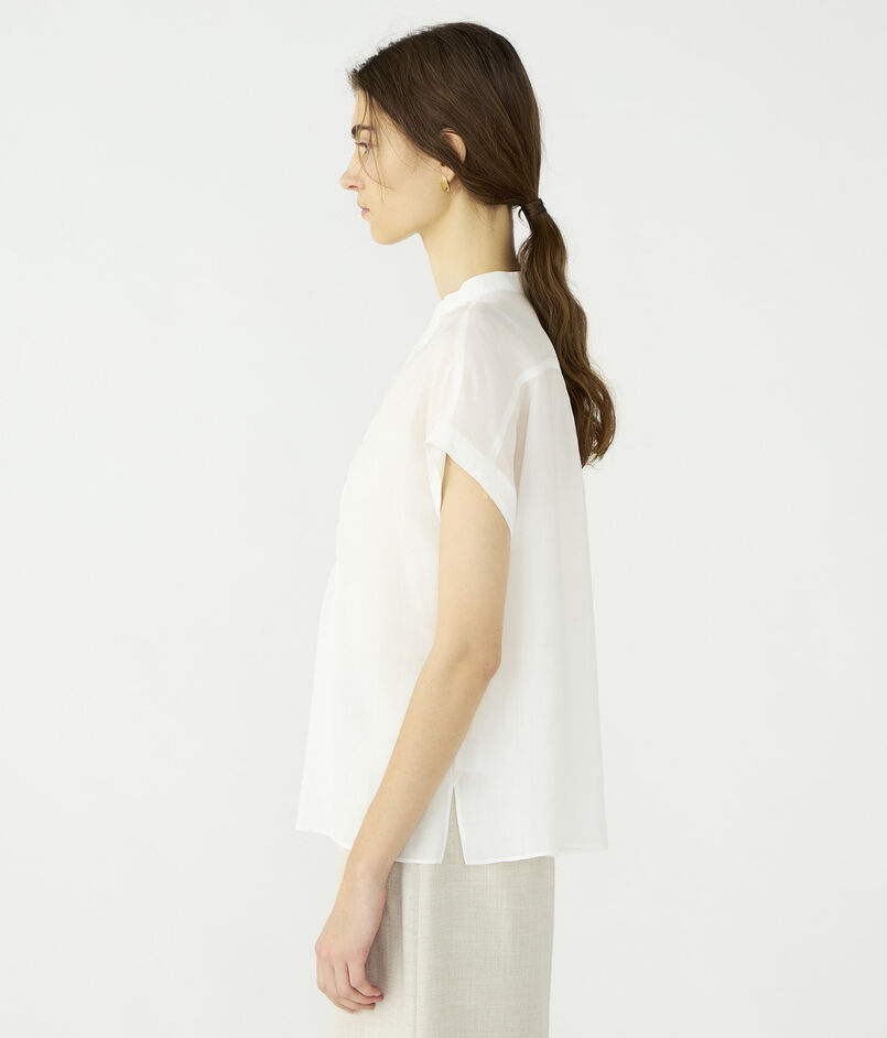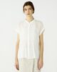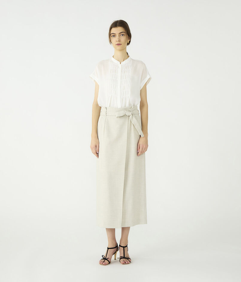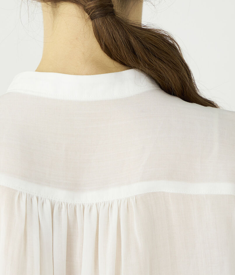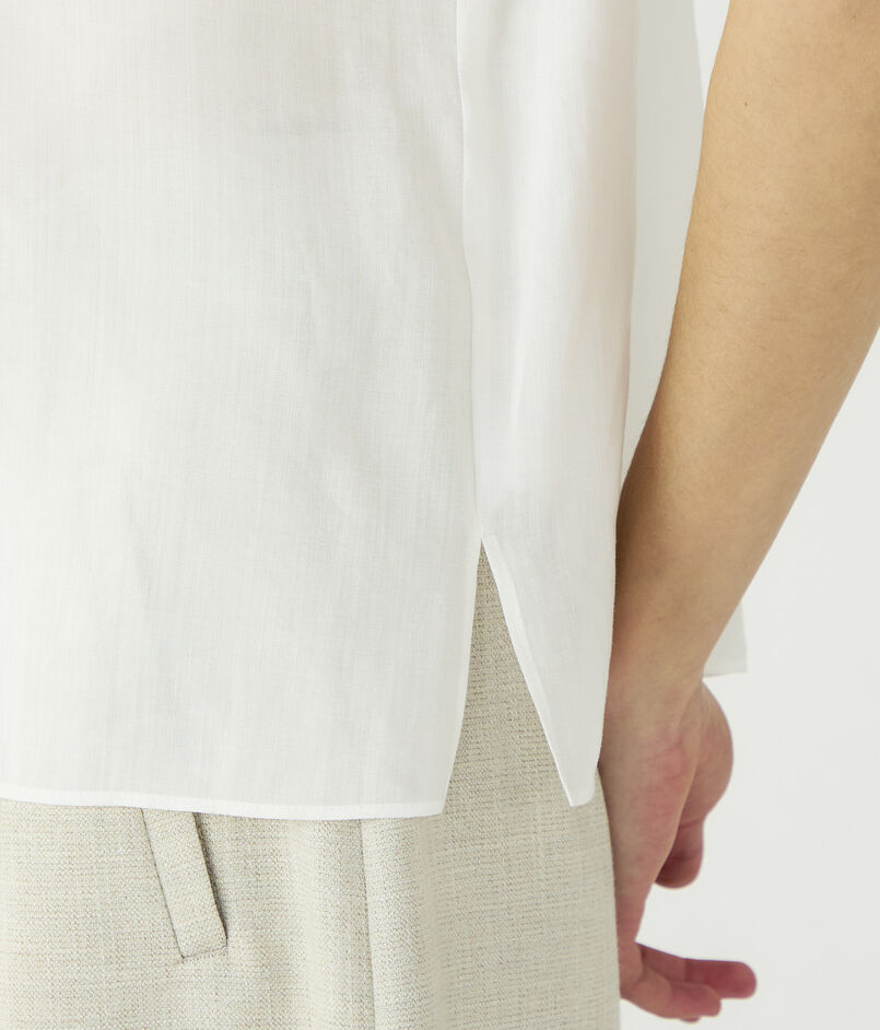 天然繊維ならではの清涼感のあるナチュラルな質感と再生繊維のしなやかさがバランス良くミックスされた上品な表情のブラウス。