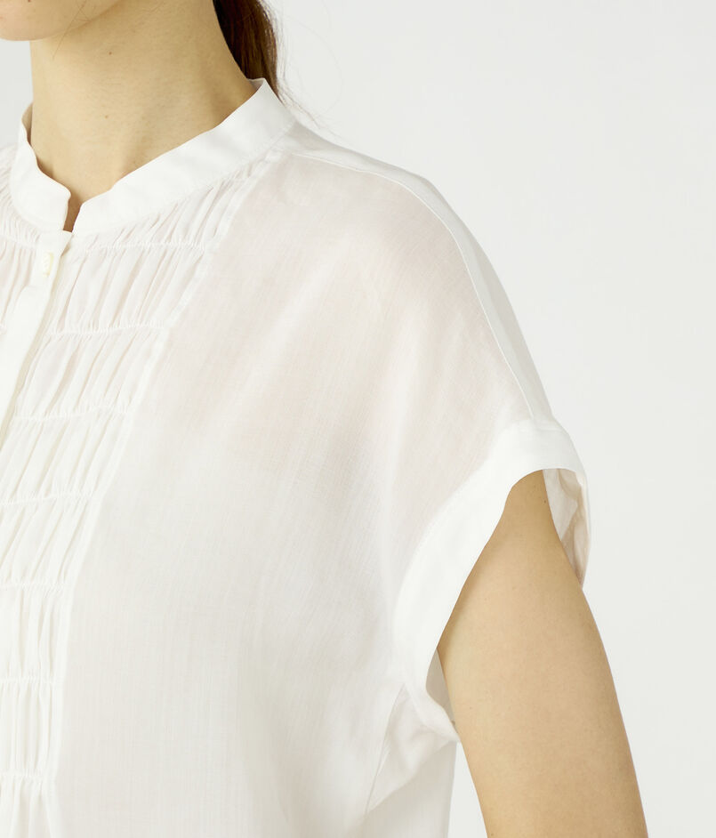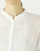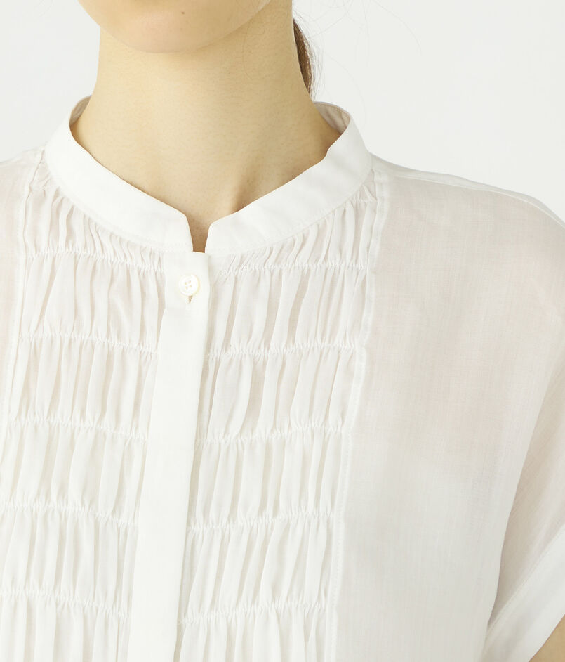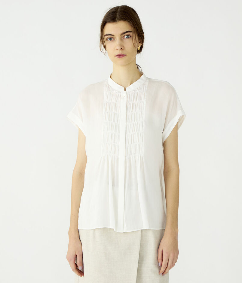 胸元に繊細なシャーリングをあしらい、ボザム風にアレンジしたクラシカルな印象のブラウス。