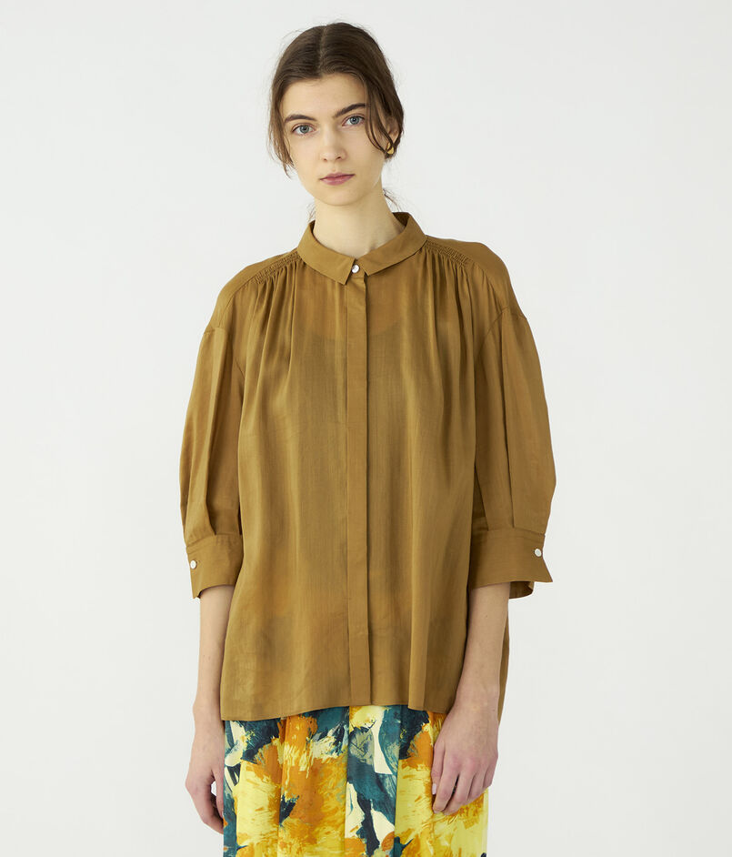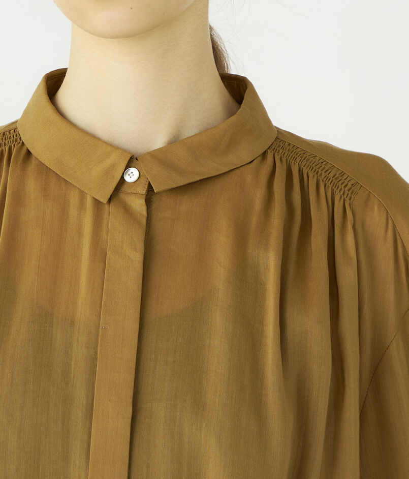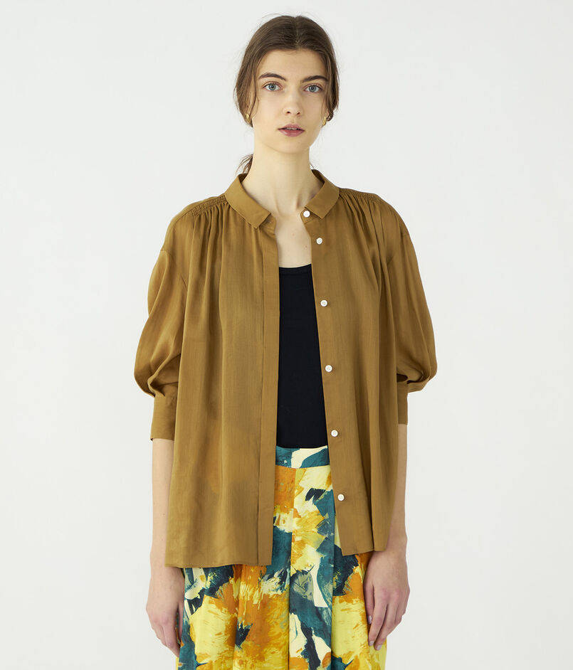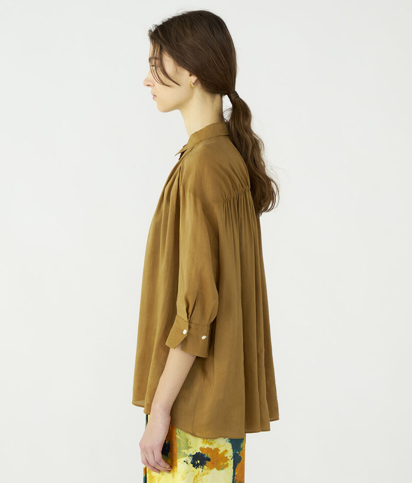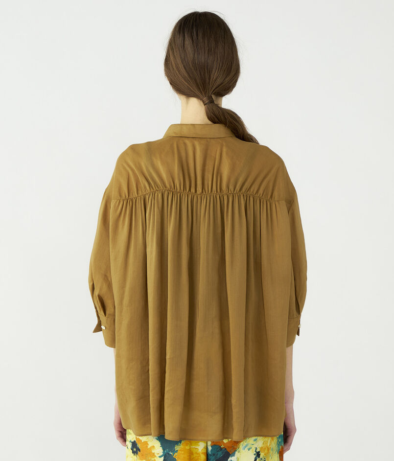 バックヨークにもたっぷりとギャザーを寄せることで、ふんわりとしたエアリーなシルエットを生み出しています。