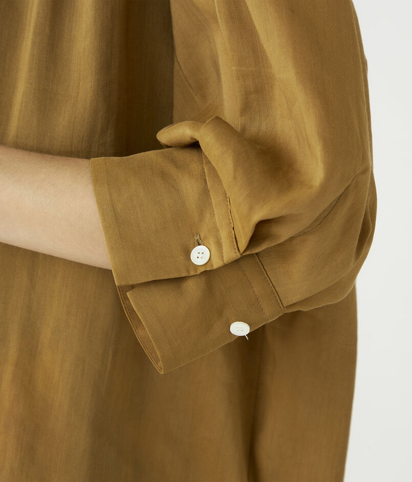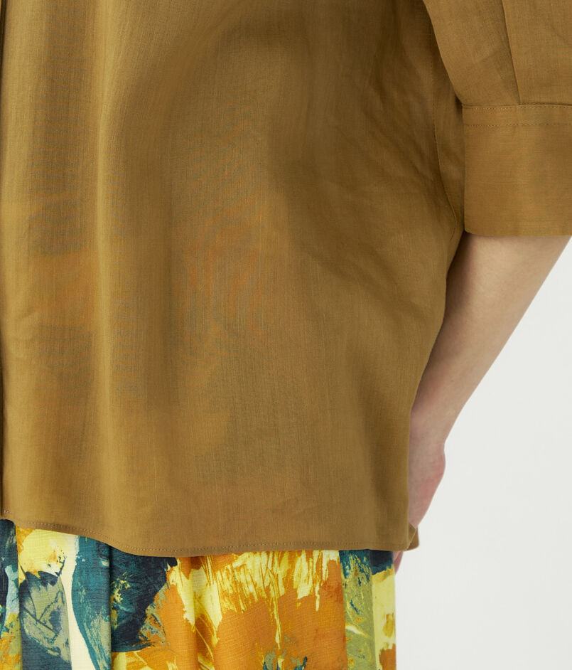 天然繊維ならではの清涼感のあるナチュラルな質感と再生繊維のしなやかさがバランス良くミックスされた上品な表情のブラウス。