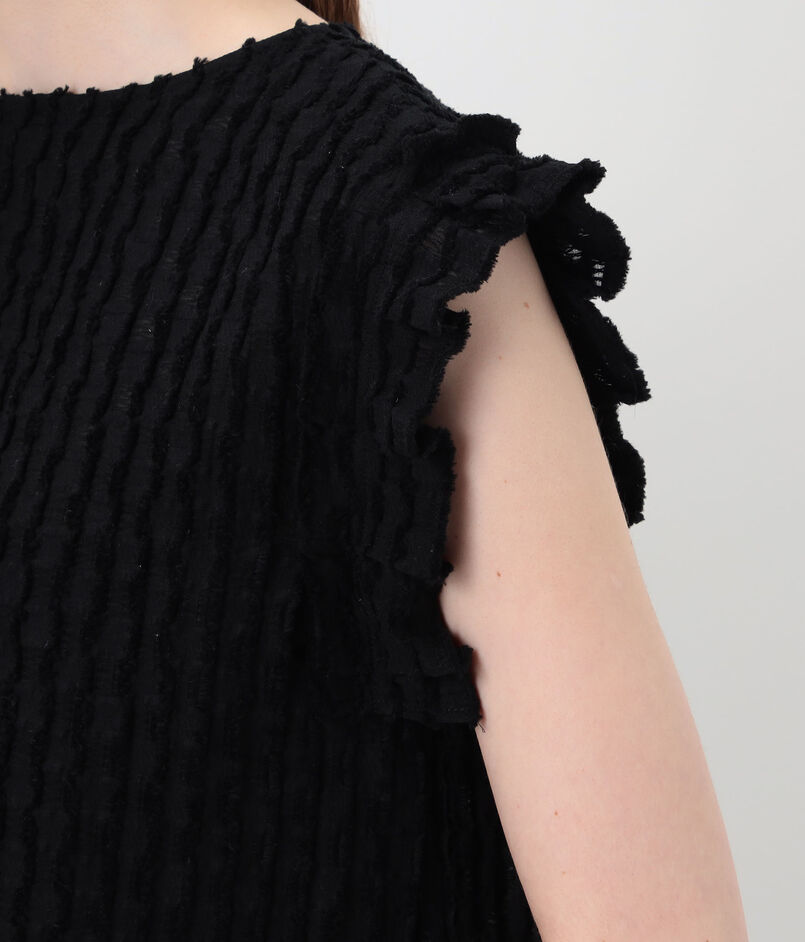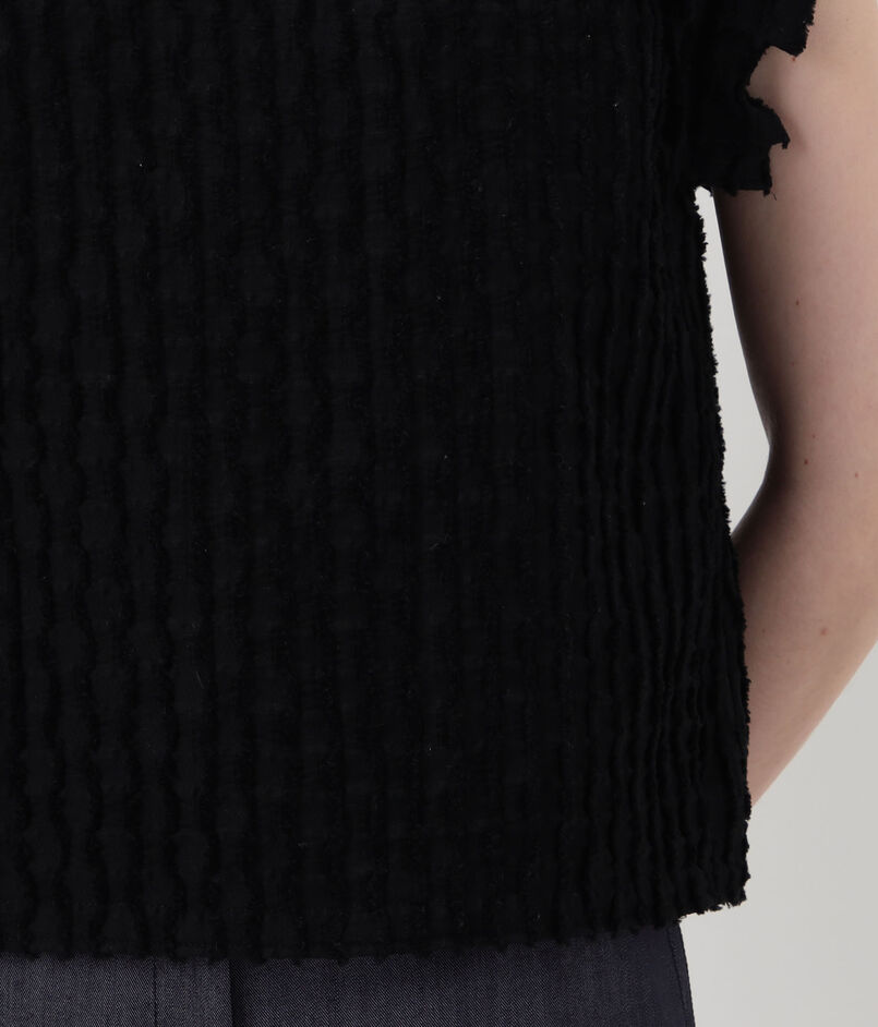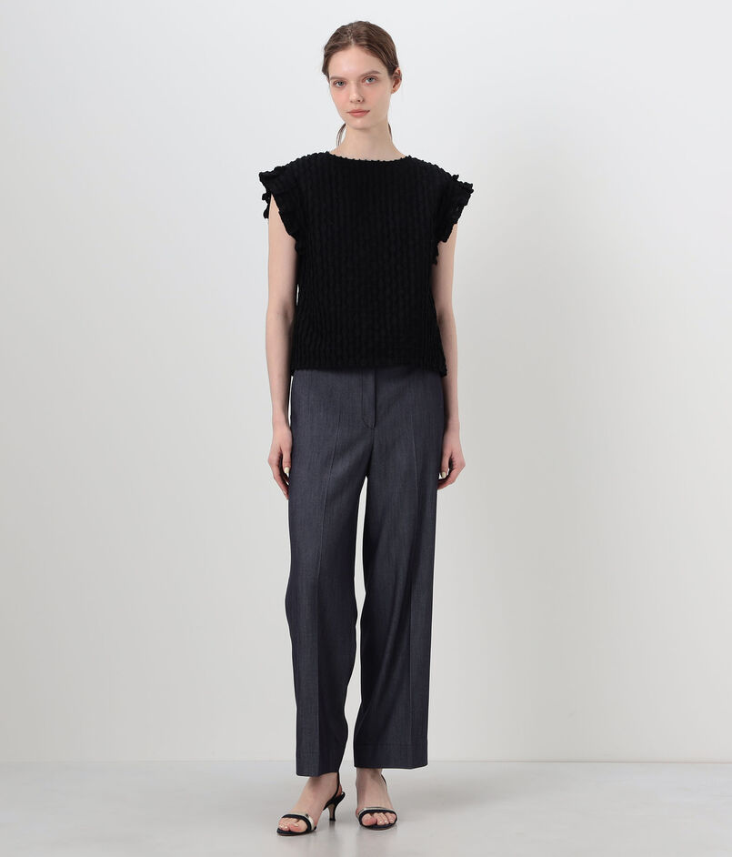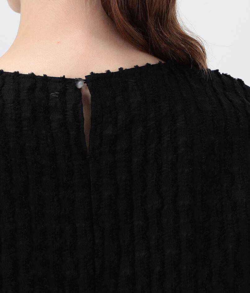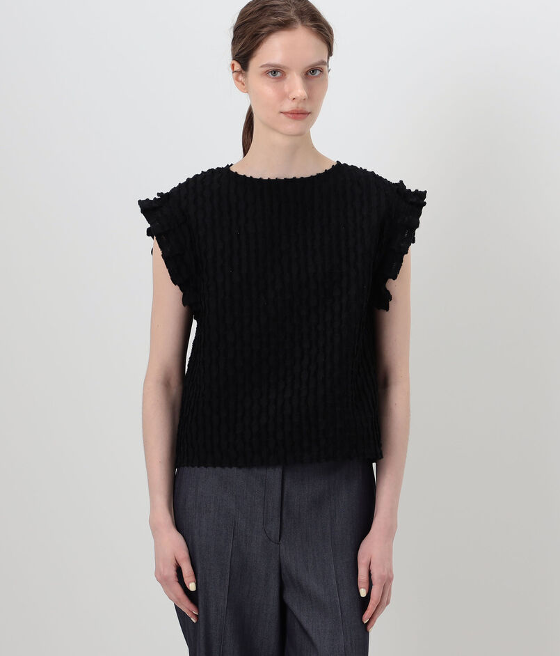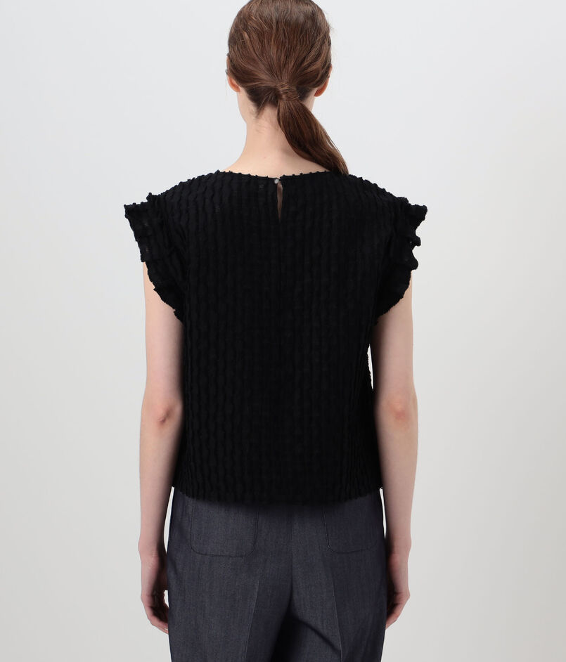 グリッドカットジャカード フリルフレンチブラウス
