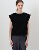 Tシャツを纏うようなイージーな着心地でありながら、袖口にあしらったフリルディテールで華やかさをプラスしています。