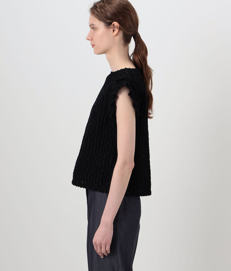 窓のように一部が透ける組織感が特徴の、〈Ballsey〉オリジナルで作成したインパクトのあるカットジャカード素材のブラウス。