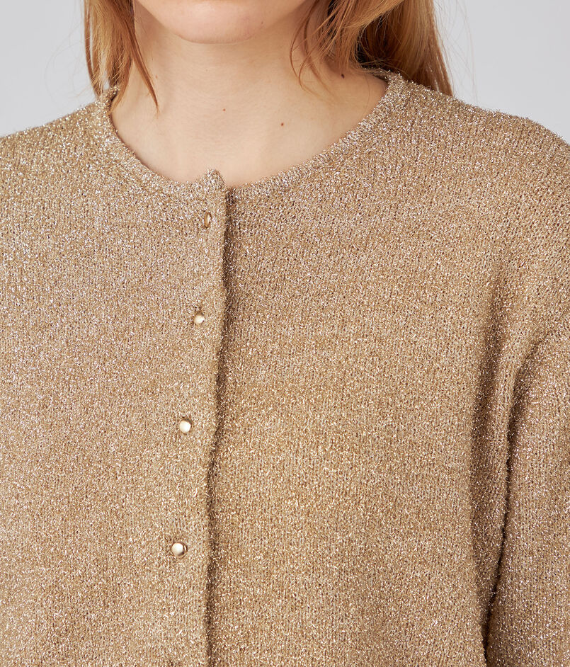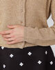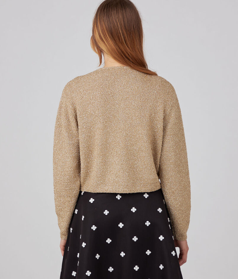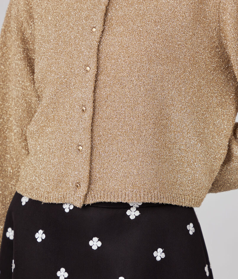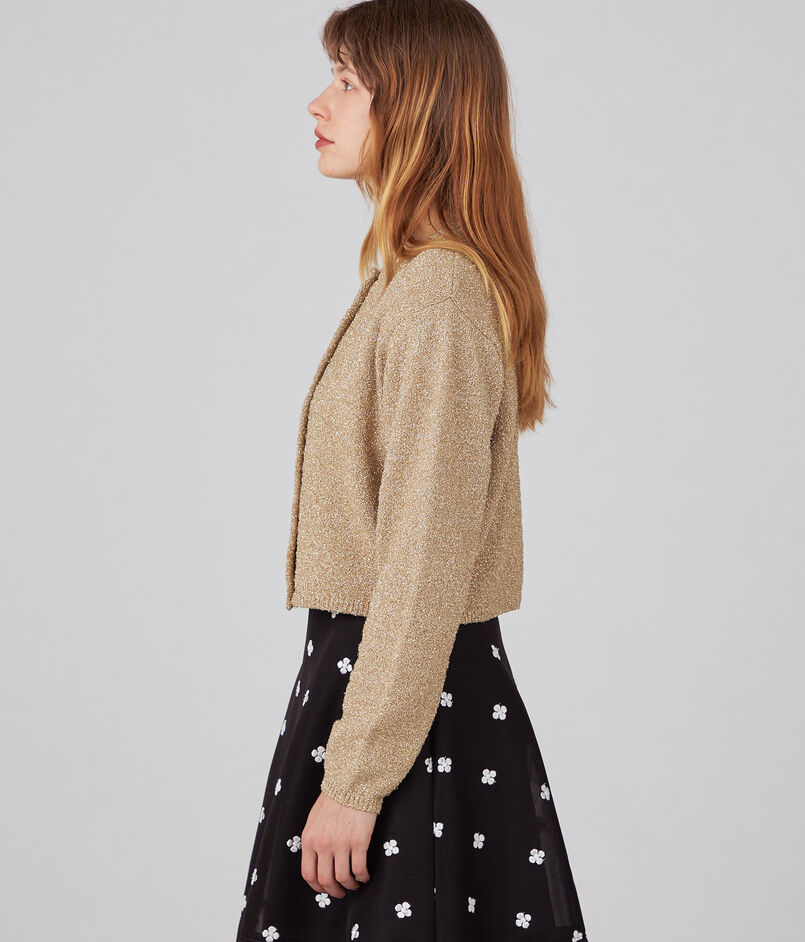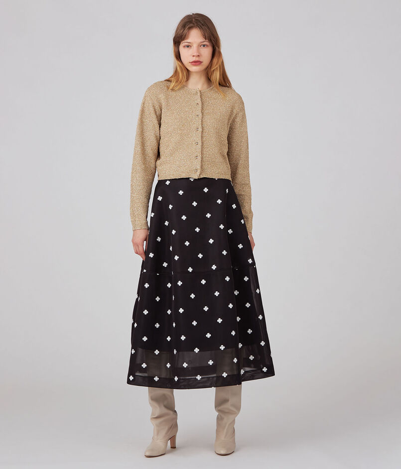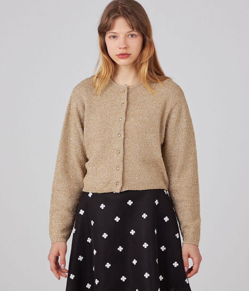 カーディガンはトレンド感のあるショート丈で、ワンピースやボリュームのあるボトムスとも相性抜群の一枚。