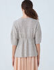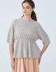 ペプラムプルオーバーはゆったりとしたスリーブデザインで抜け感がありつつも、ギャザーディテールでウエストマークすることで女性らしいメリハリのあるシルエットに仕上げた一枚。