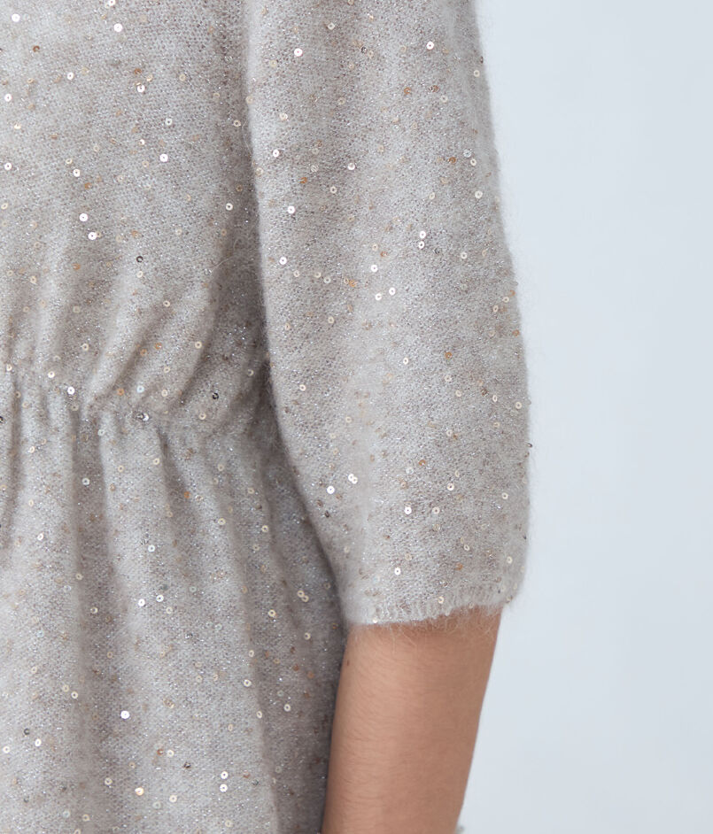 スパンコールの上品なきらめきで、シンプルでありながらも華やかな表情が魅力です。