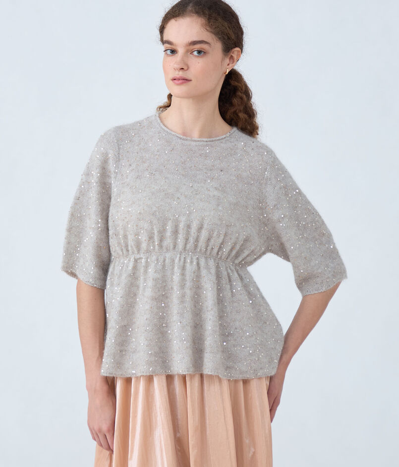 ラメスパンコールモヘヤ ペプラムプルオーバー