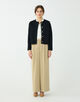 すっきりとしたボディとコンパクトなネックラインでクリーンで女性らしい雰囲気の一枚。