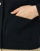 フロントに配したメタルボタンでアクセントをプラスしています。