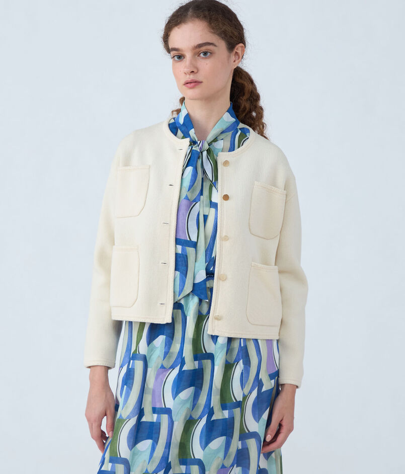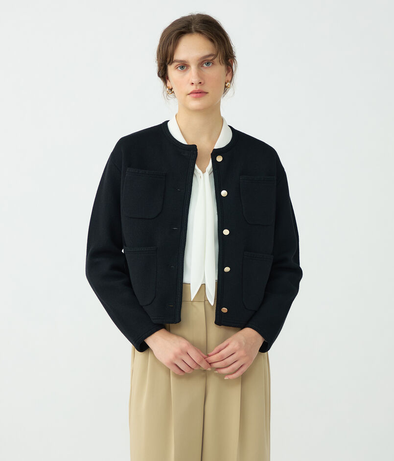 コットンポリエステルダブルフェイス 4ポケットカーディガン