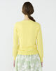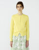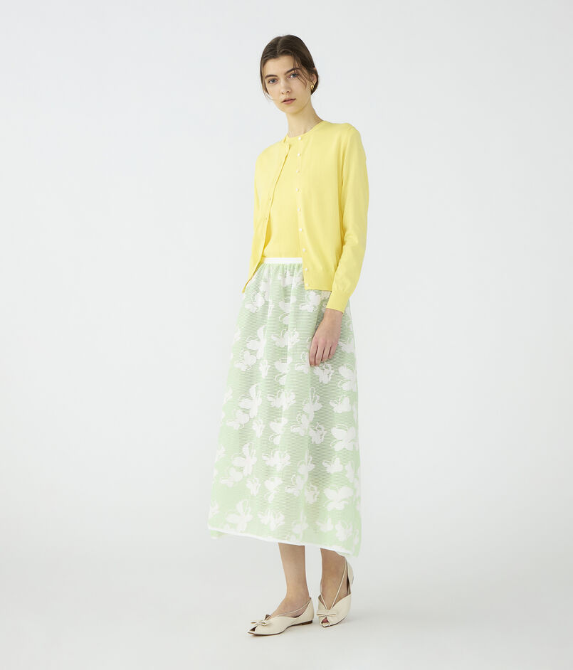 カーディガンはほど良くボディにフィットするシルエットと詰まったネックラインですっきりと着用できる一枚。