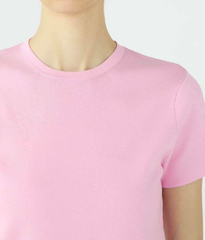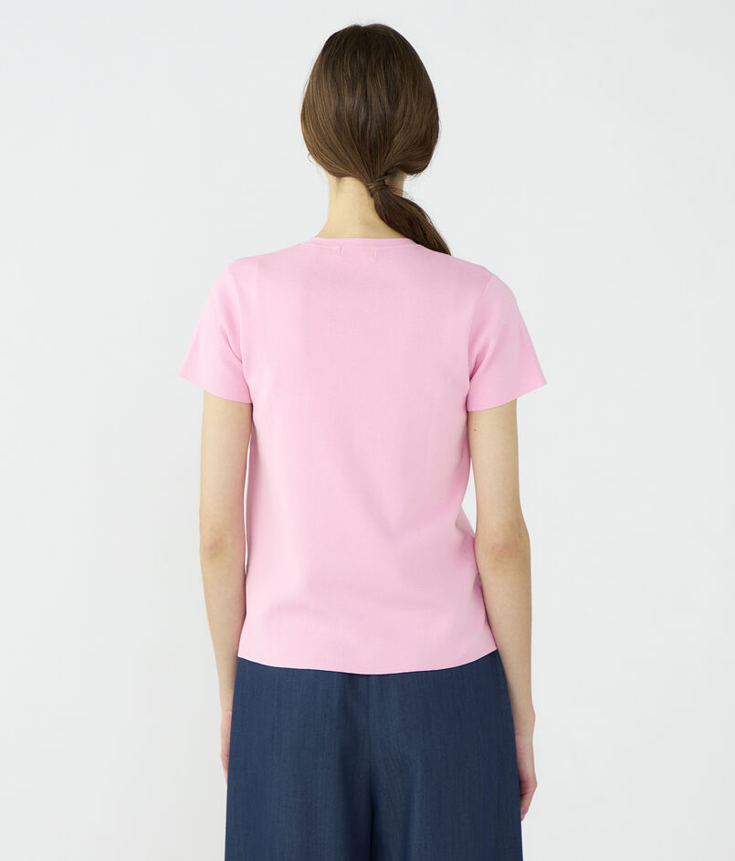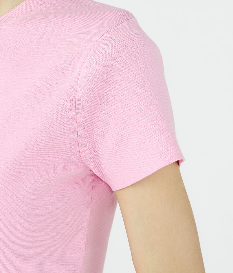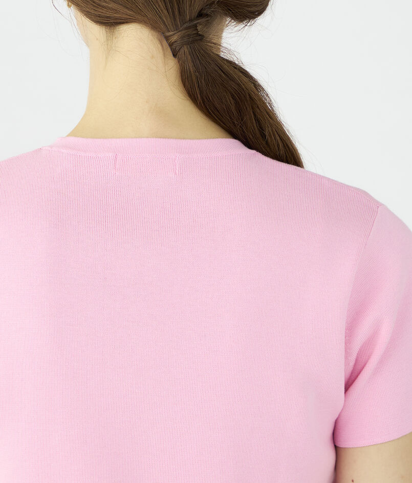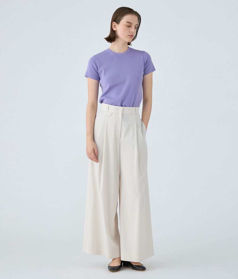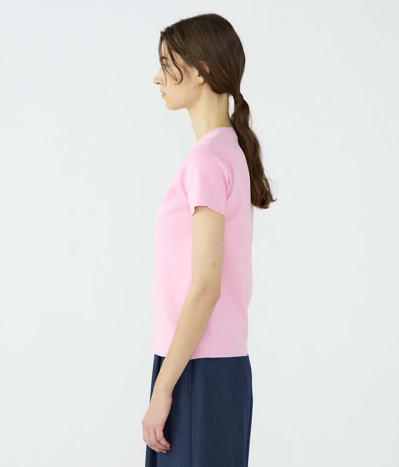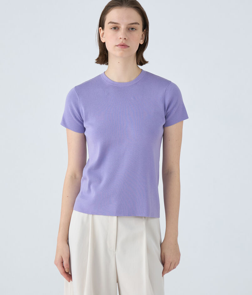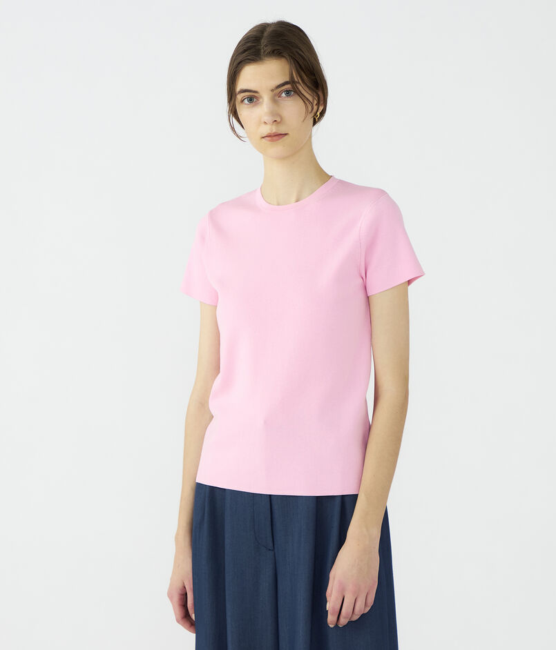 クルーネックプルオーバーはほど良くボディにフィットするシルエットに短めのスリーブデザインでクリーンな印象の一枚。