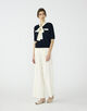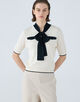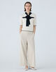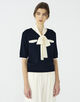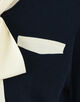 配色使いのボリュームのあるボウタイは、リボン結びしたりラフに一掛けするなどスタイリングに合わせてさまざまなアレンジをお楽しみいただけます。