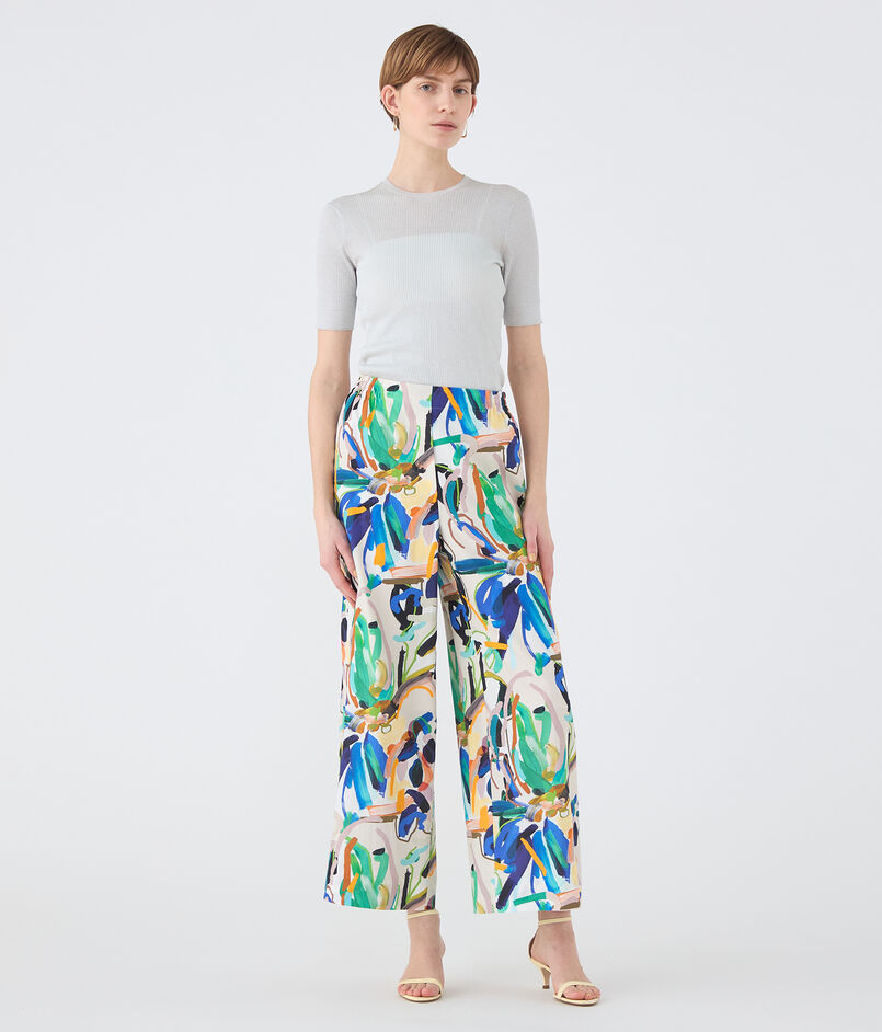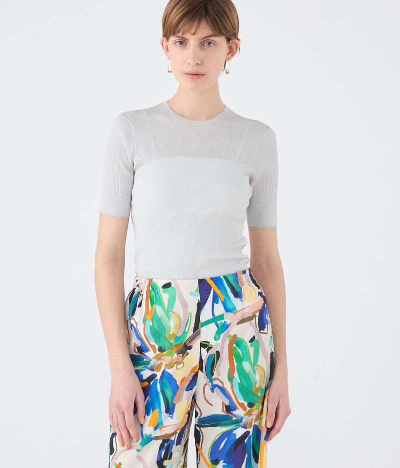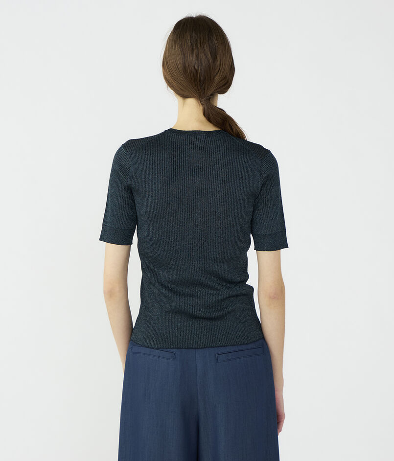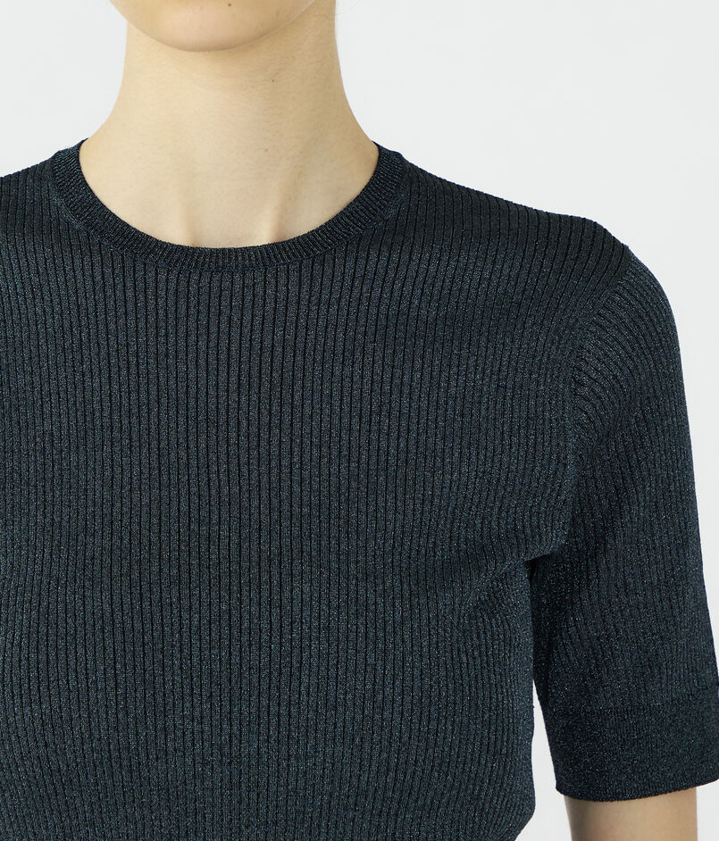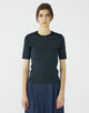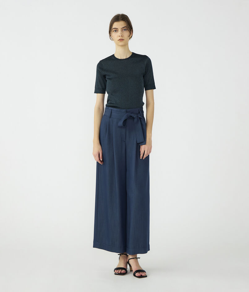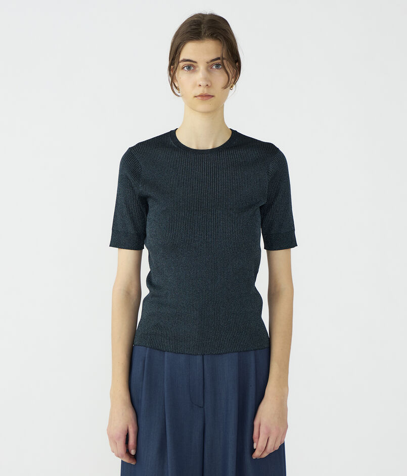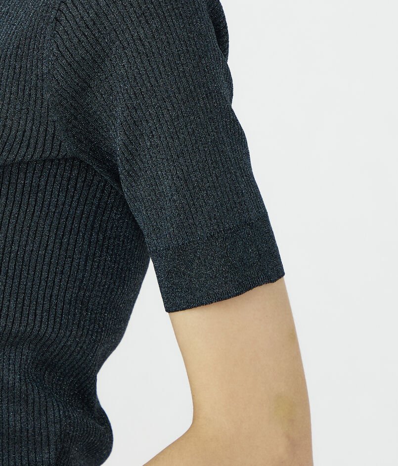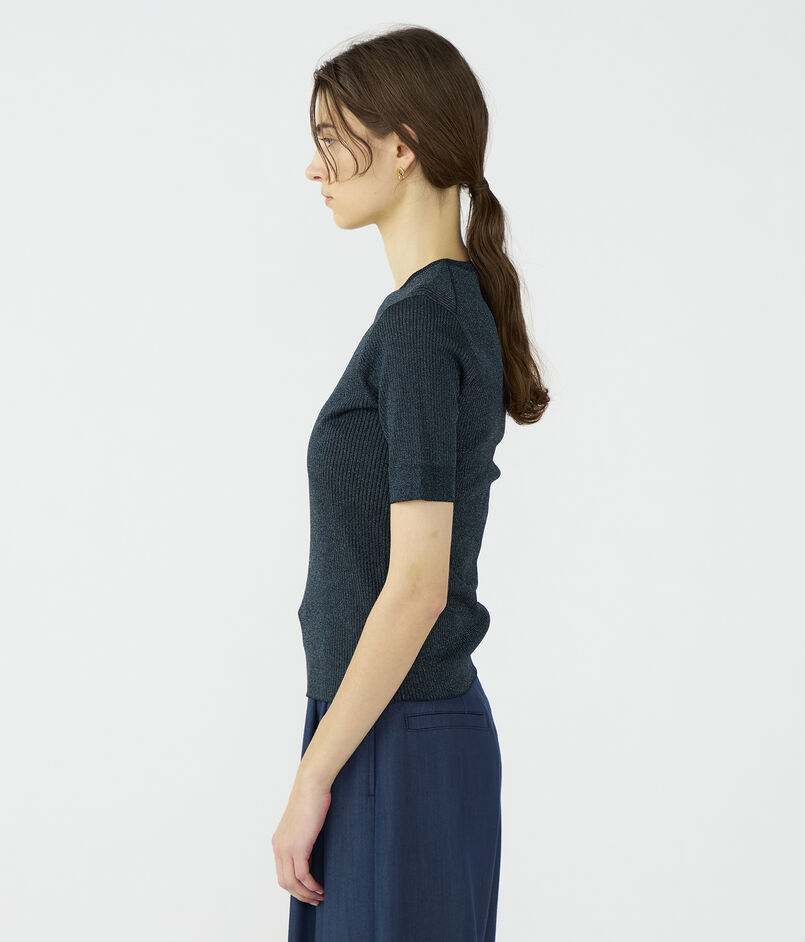 プルオーバーはコンパクトなネックラインに肘上までのやや長めのハーフスリーブも上品な印象の一着。