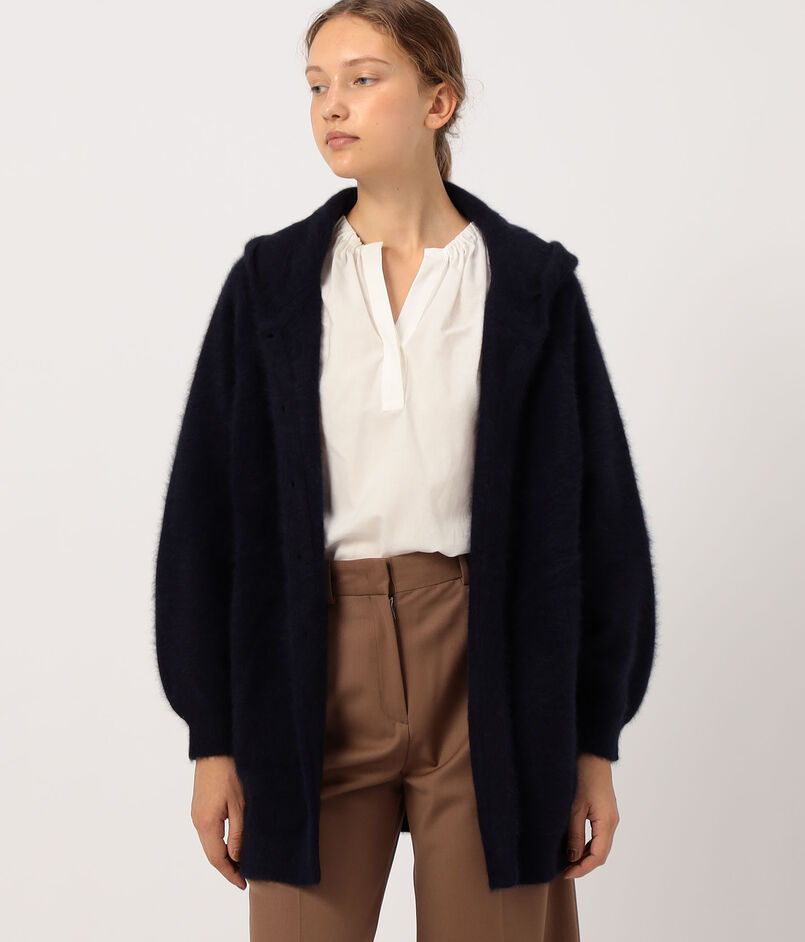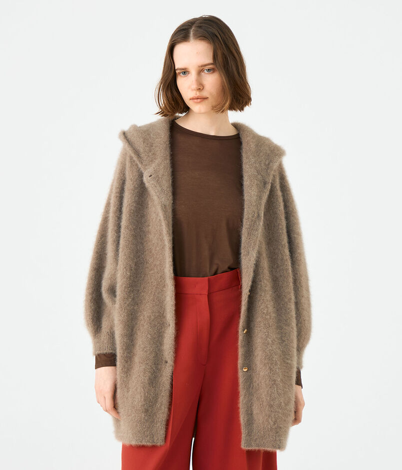 フーディーカーディガンはゆったりとしたボディにふんわりとしたスリーブ、大きめのフードデザインで、コーディネートにほど良いカジュアル感をプラスしてくれる一着。