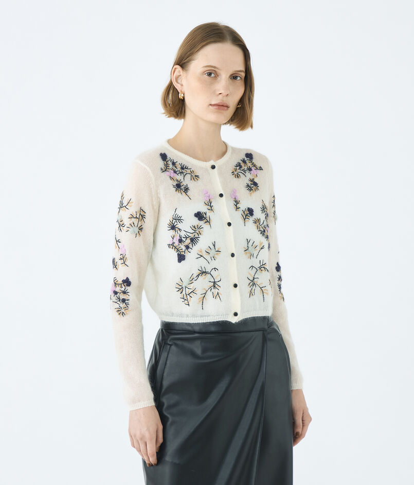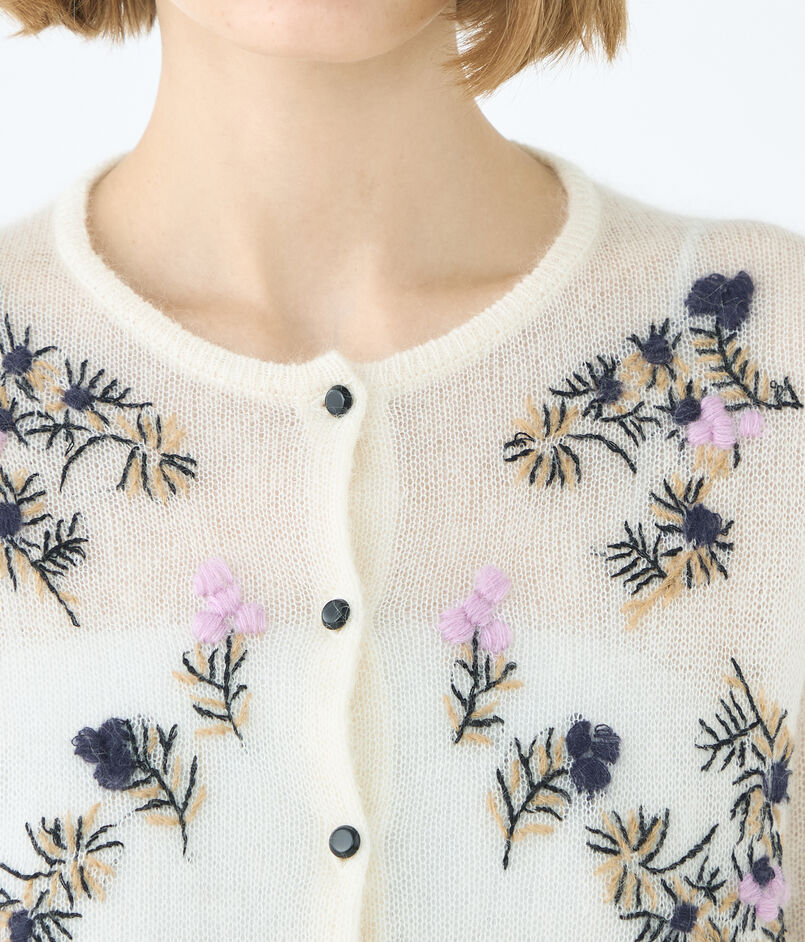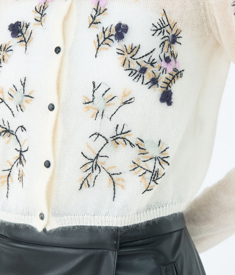 モヘヤナイロンエンブロイダリー ショートカーディガン