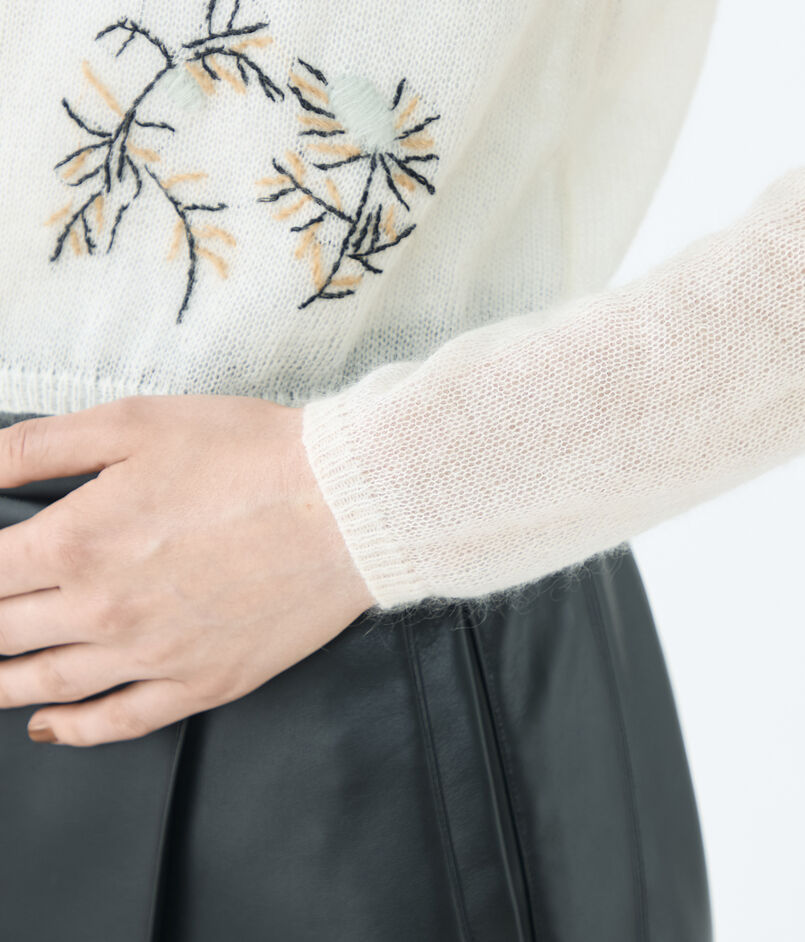 ゆるく編んだスーパーキッドモヘアのニットに〈Ballsey〉オリジナルのハンド刺繍を施したニットシリーズ。