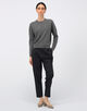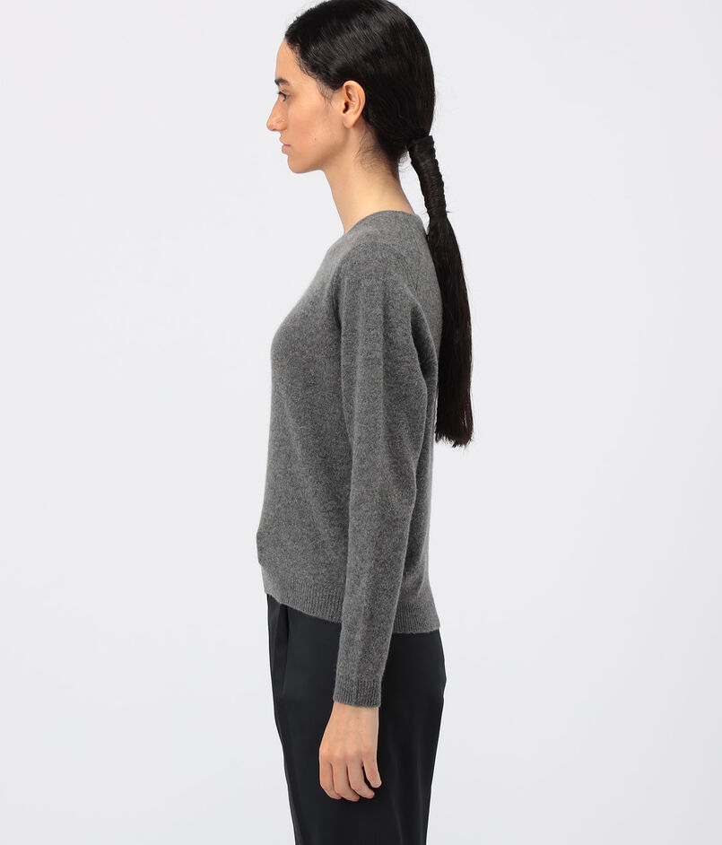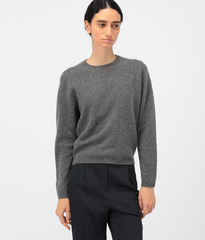 クリーンな印象のクルーネックプルオーバーは、襟ぐりに透明糸でラインを入れさり気ないアクセントに。