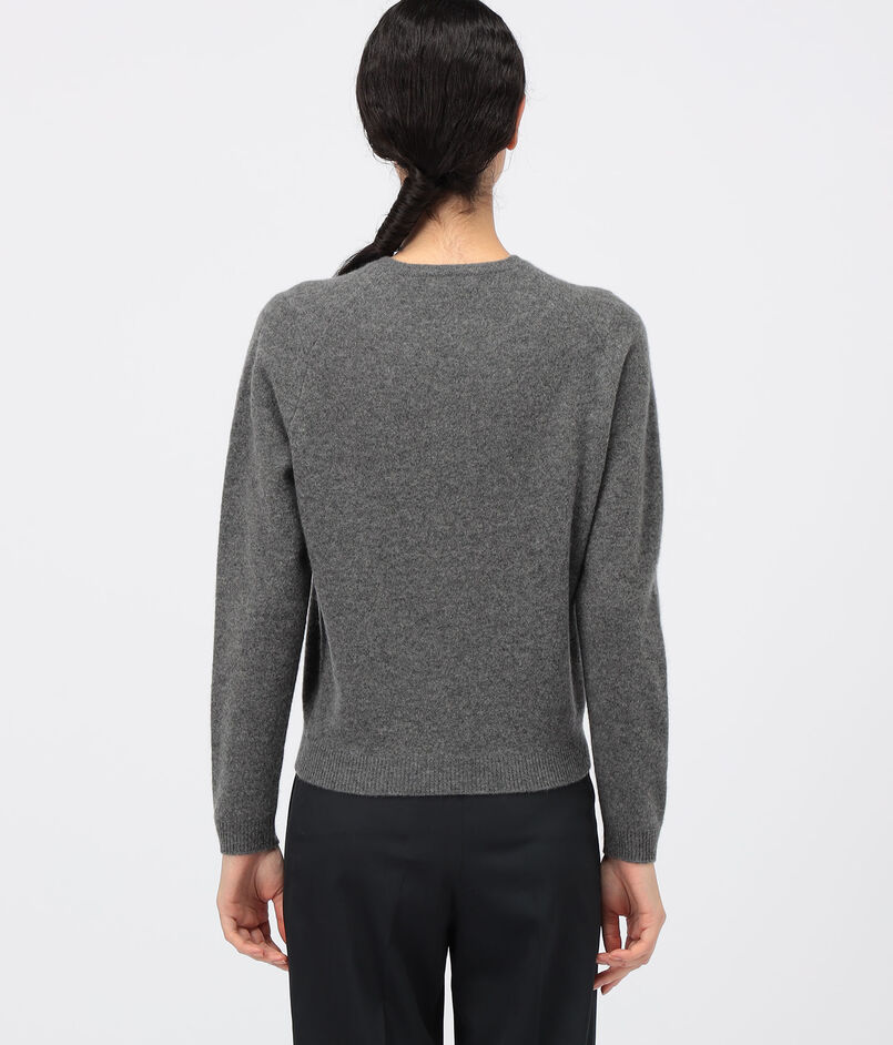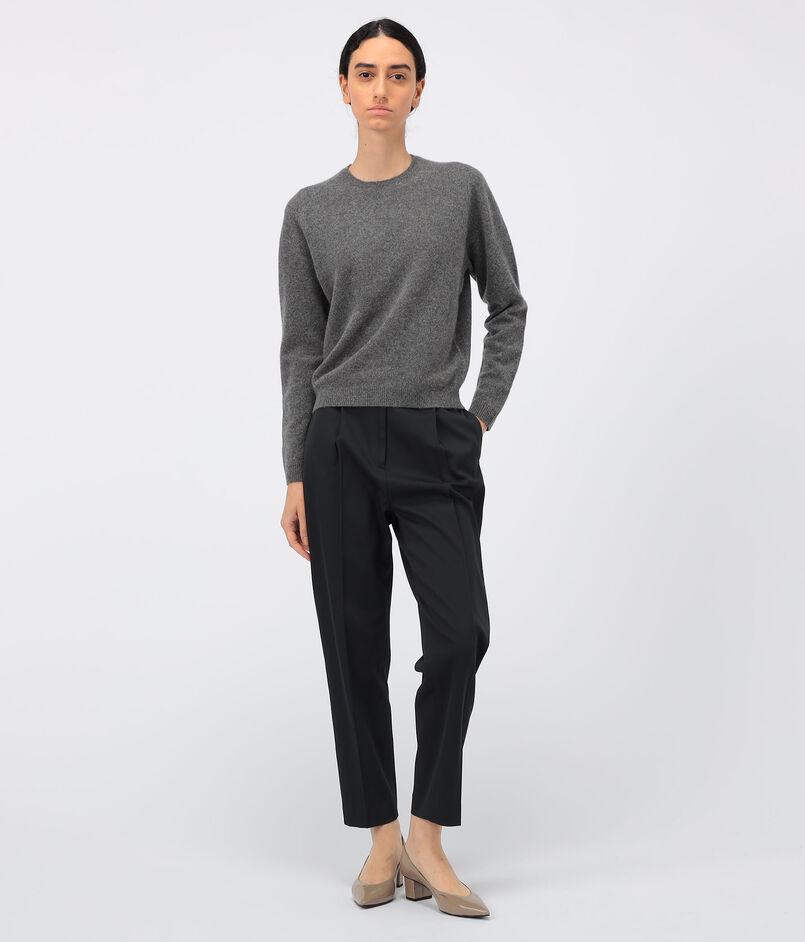クリーンな印象のクルーネックプルオーバーは、襟ぐりに透明糸でラインを入れさり気ないアクセントに。