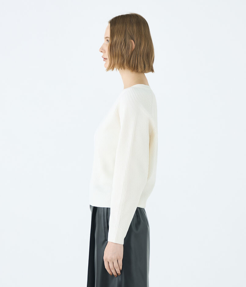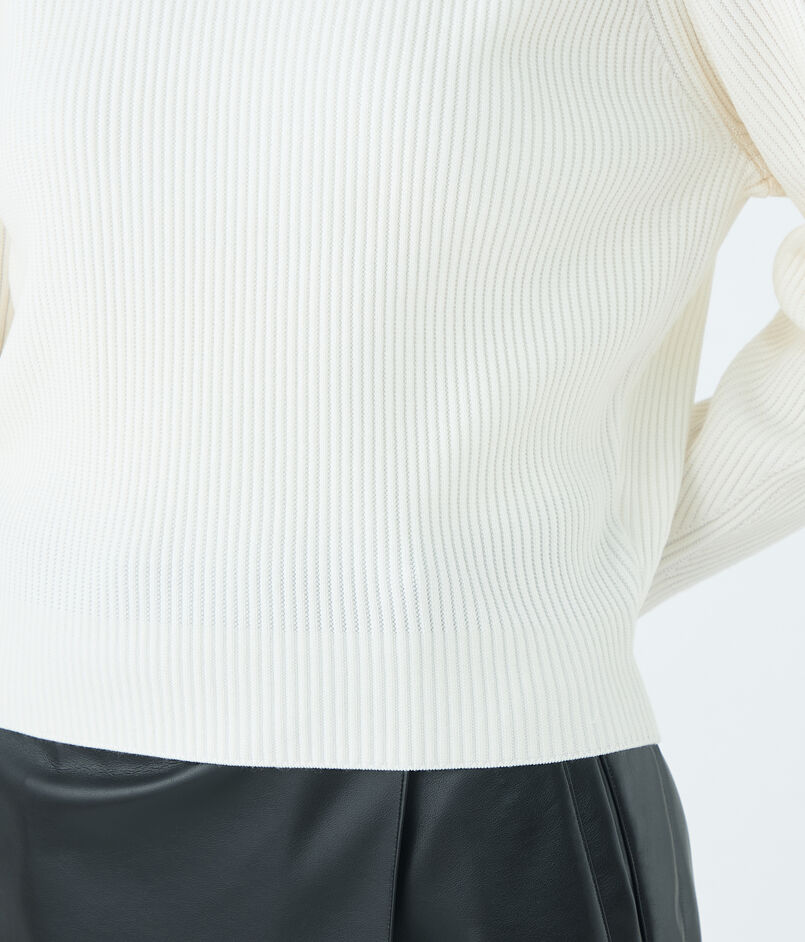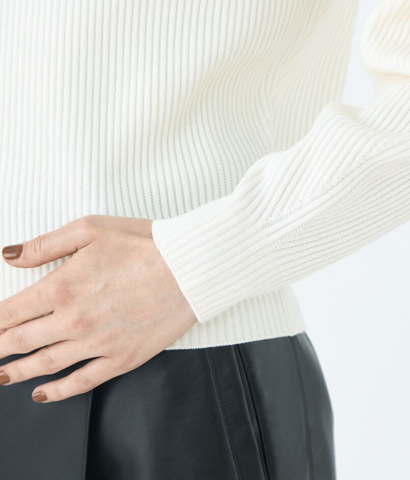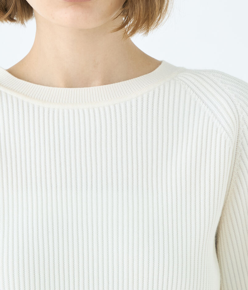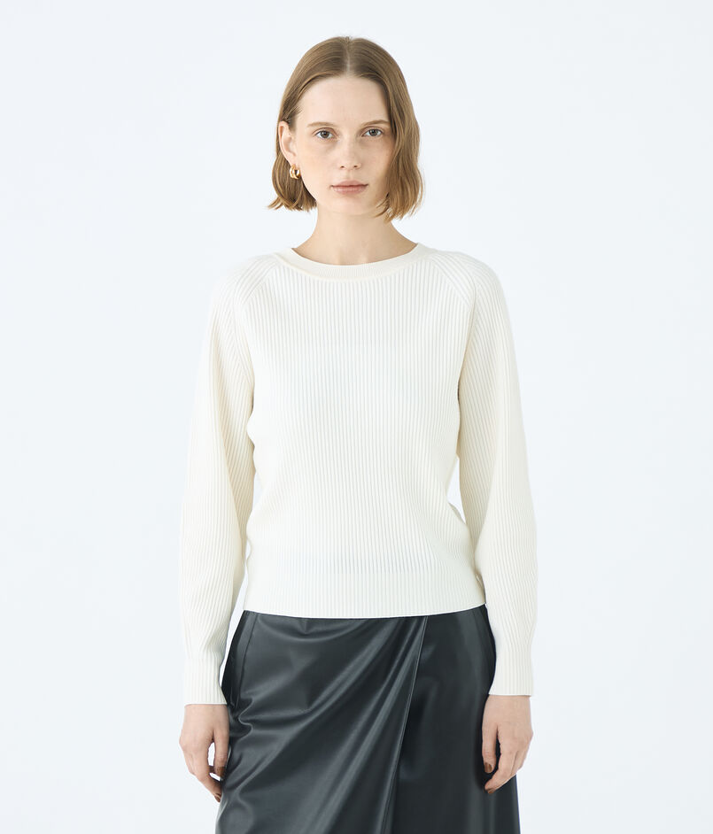 さらりとしたタッチとほのかな光沢感、立体的なリブ編みが特徴のニットシリーズ。