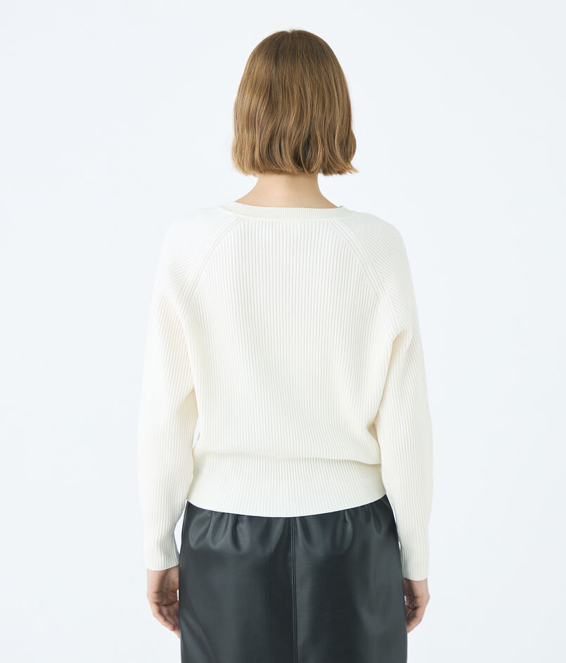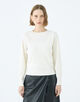 ラウンドネックプルオーバーはリラックスフィットのボディと抜け感のあるラウンドネック、丸みのあるスリーブデザインで女性らしい優しい印象でお召しいただける一着。