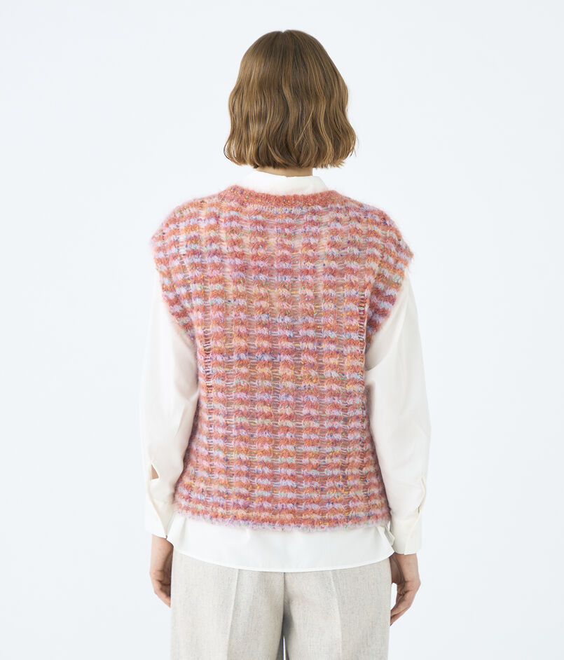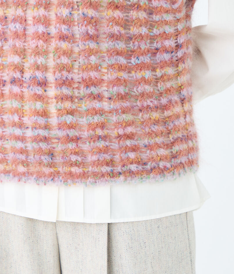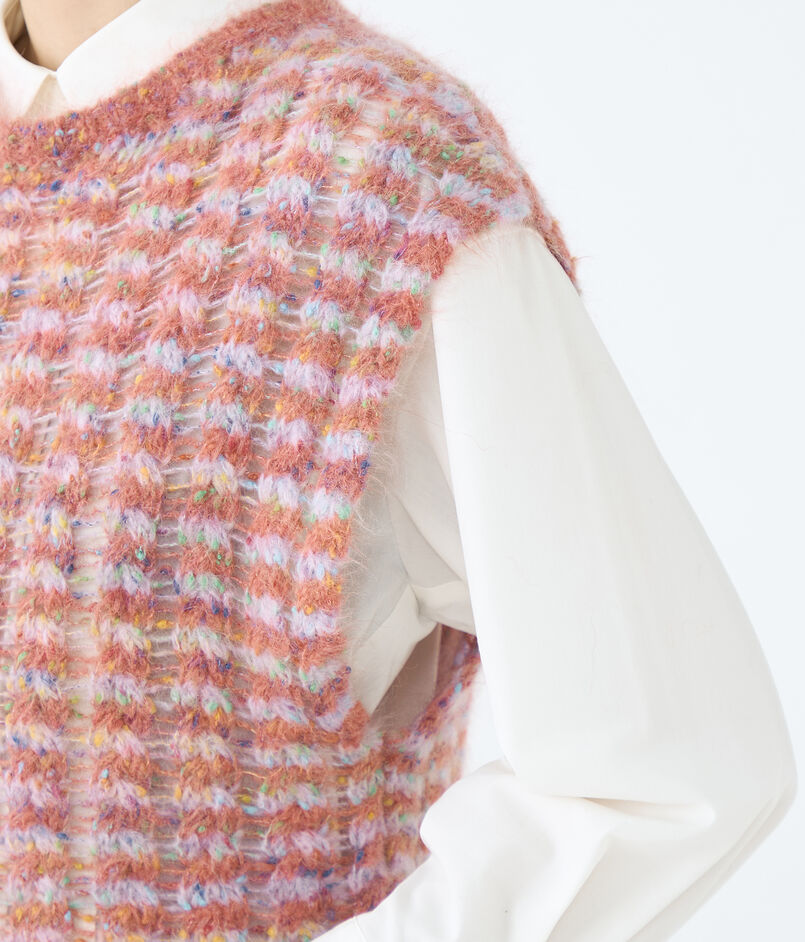 2色のイタリア糸を使用しボーダーケーブル柄に編み上げたニットベスト。