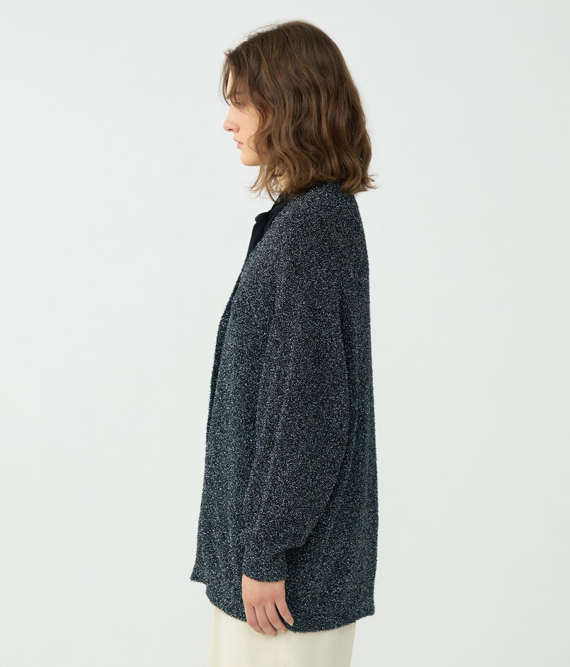 カーディガンはゆったりとしたシルエットにヒップにかかる長めの着丈でリラックスムード漂う一着。