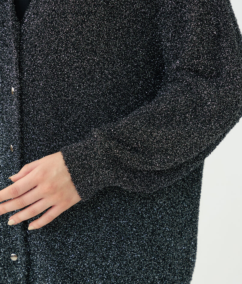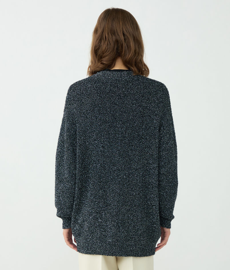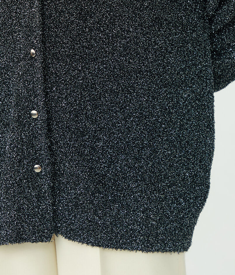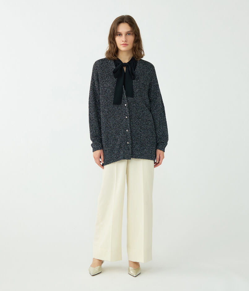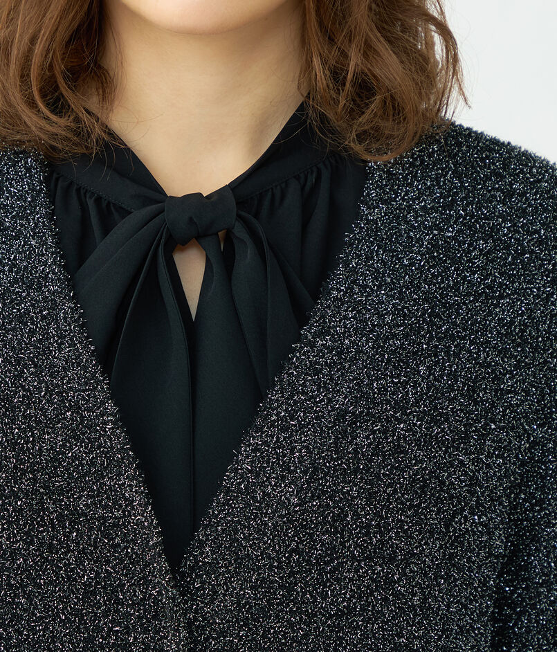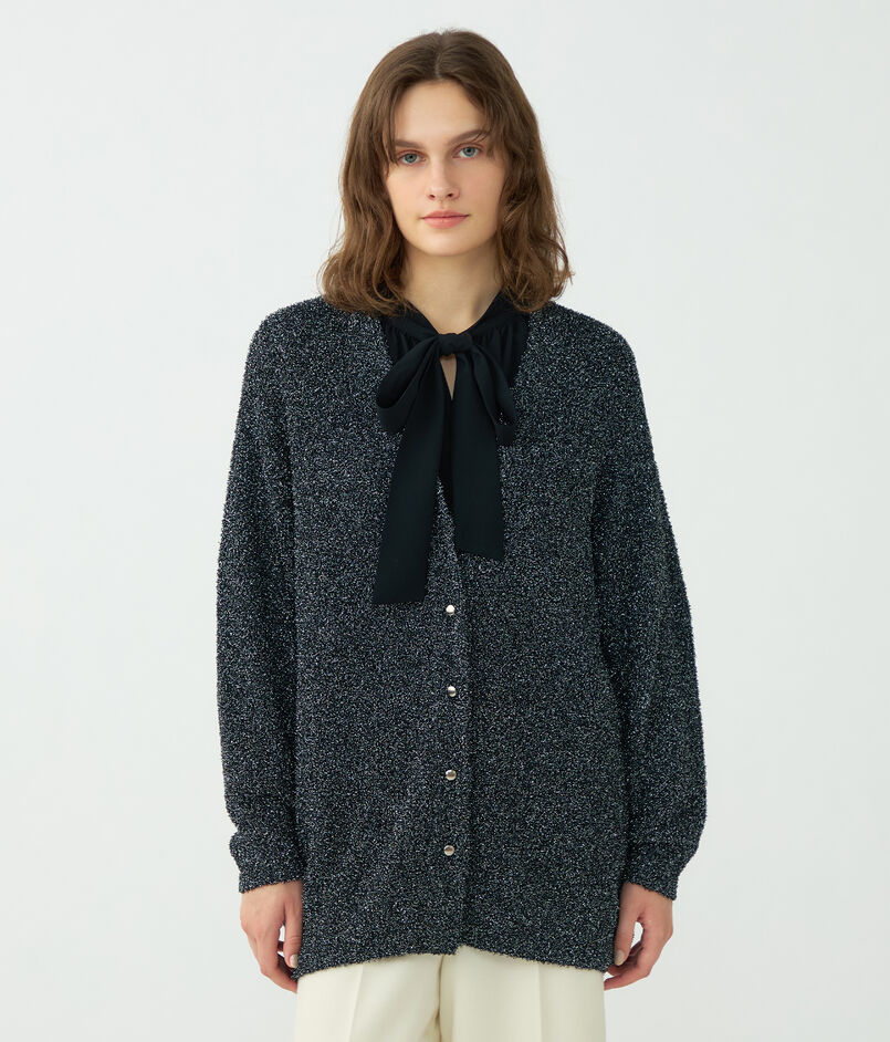 ラメが編みこまれた糸が上品な輝きを放つ、ホリデーシーズンにぴったりのニットシリーズ。