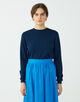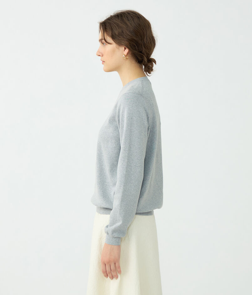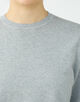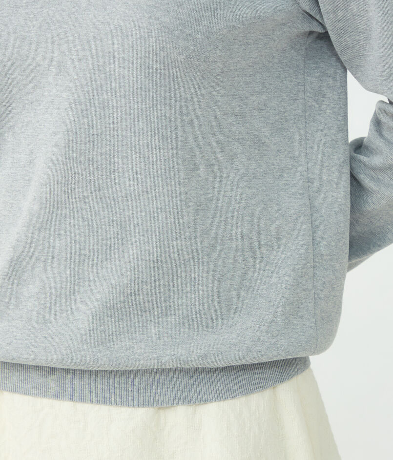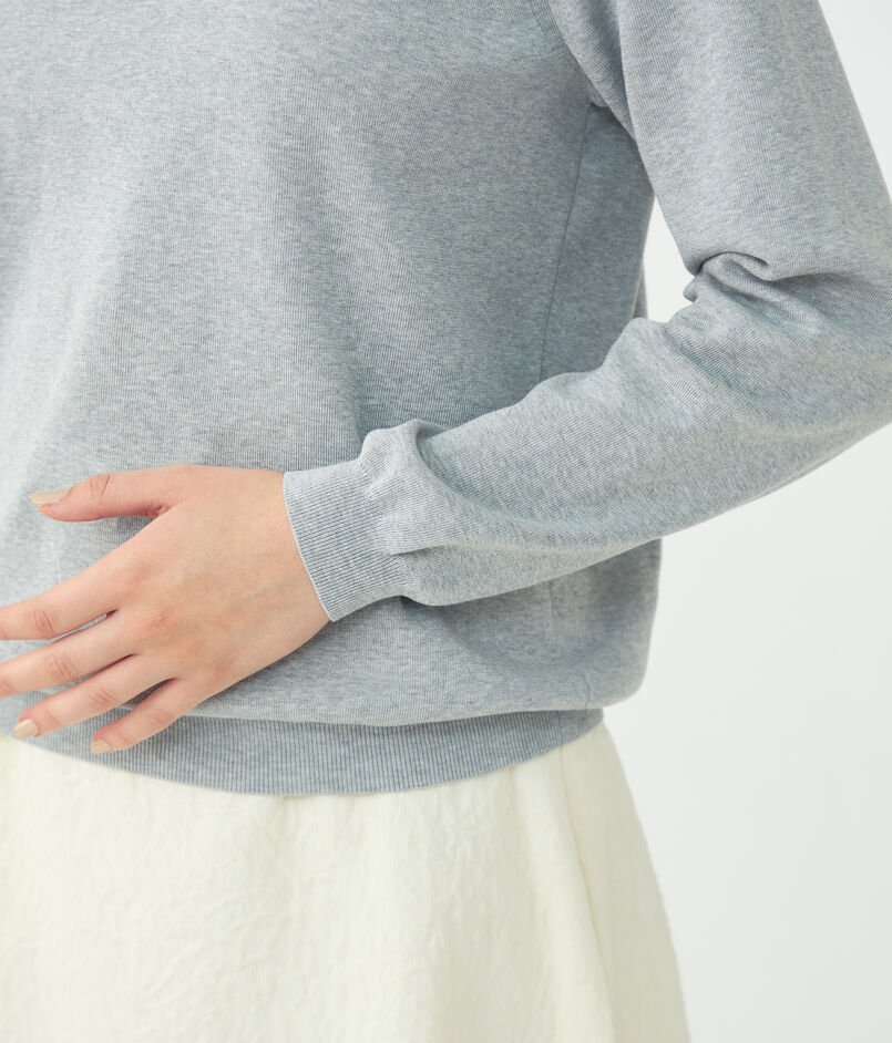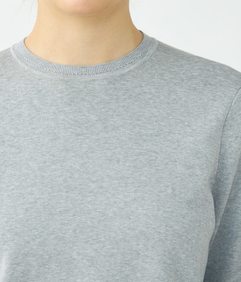 クルーネックプルオーバーは適度にゆとりのあるボディバランスに仕上げ、襟のリブにアイレットを入れることで顔まわりにさりげなくポイントをつけています。