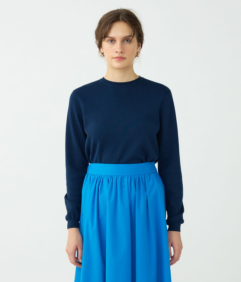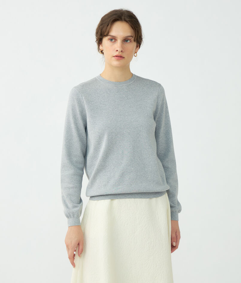 ナチュラルな光沢とぬめり感のある滑らかな肌触りが特徴のスビンコットンを使用し、贅沢に総針編みで仕上げたニットシリーズ。
