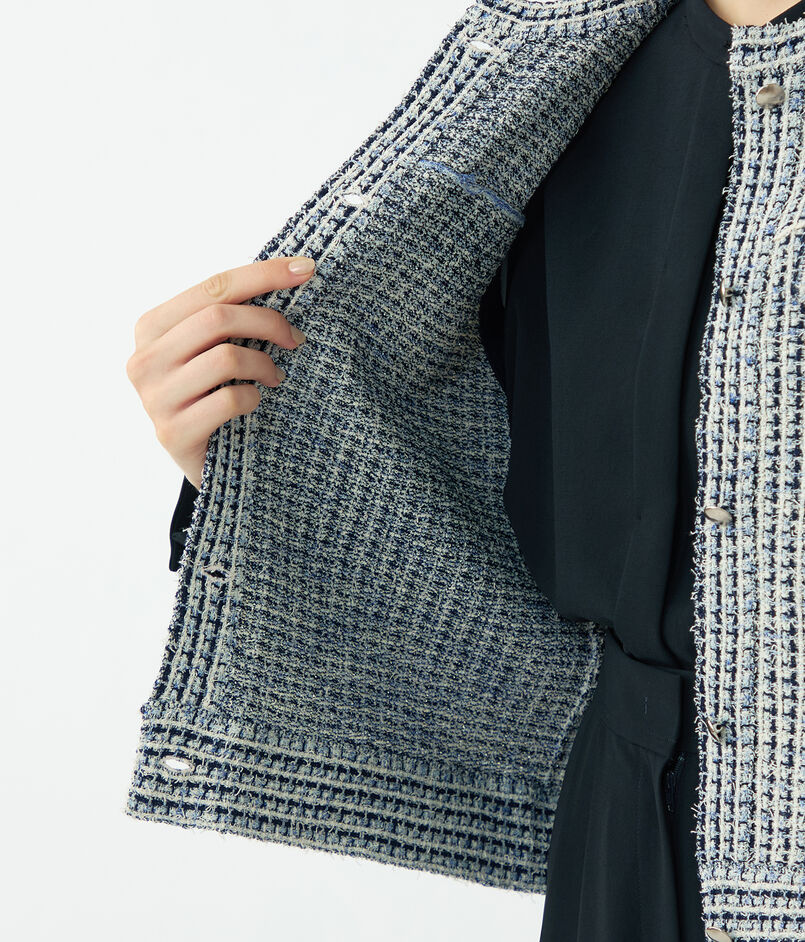 3種類の糸で編み上げることで生まれる奥行きのあるチェック柄が魅力的なニットシリーズ。