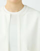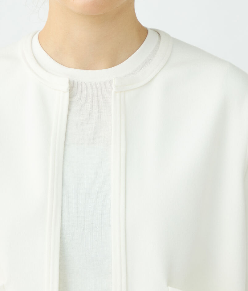 ゆとりを持たせたボクシーなシルエットにフロントオープンのデザインでモダンなバランスに。