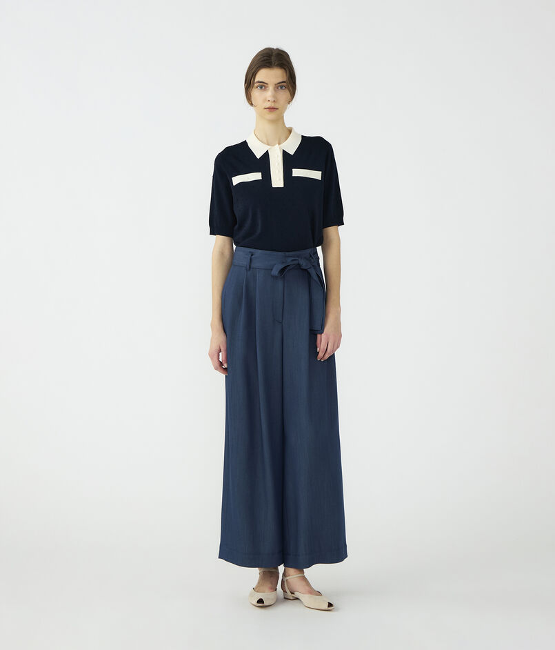 ポロプルオーバーはコンパクトな襟デザインにやや長めのハーフスリーブでクラシカルな印象の一着。