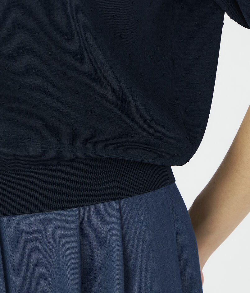 目の詰まったベースのニット地にタックで立体的なドット柄を表現した〈Ballsey〉ならではの上品なニットシリーズ。