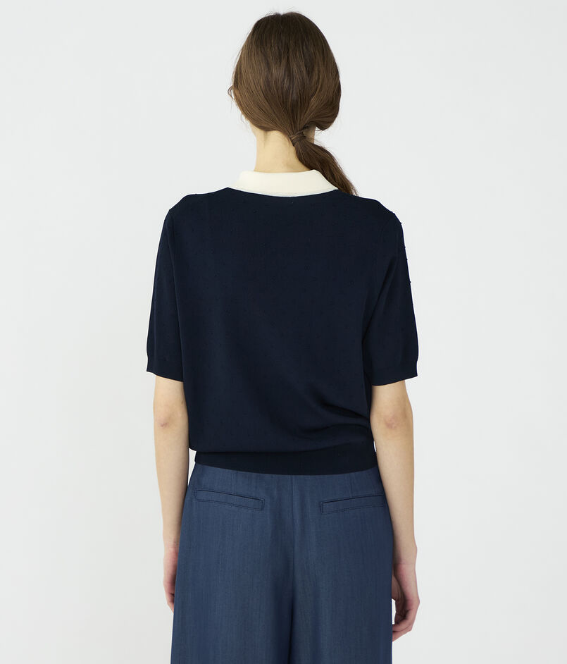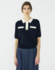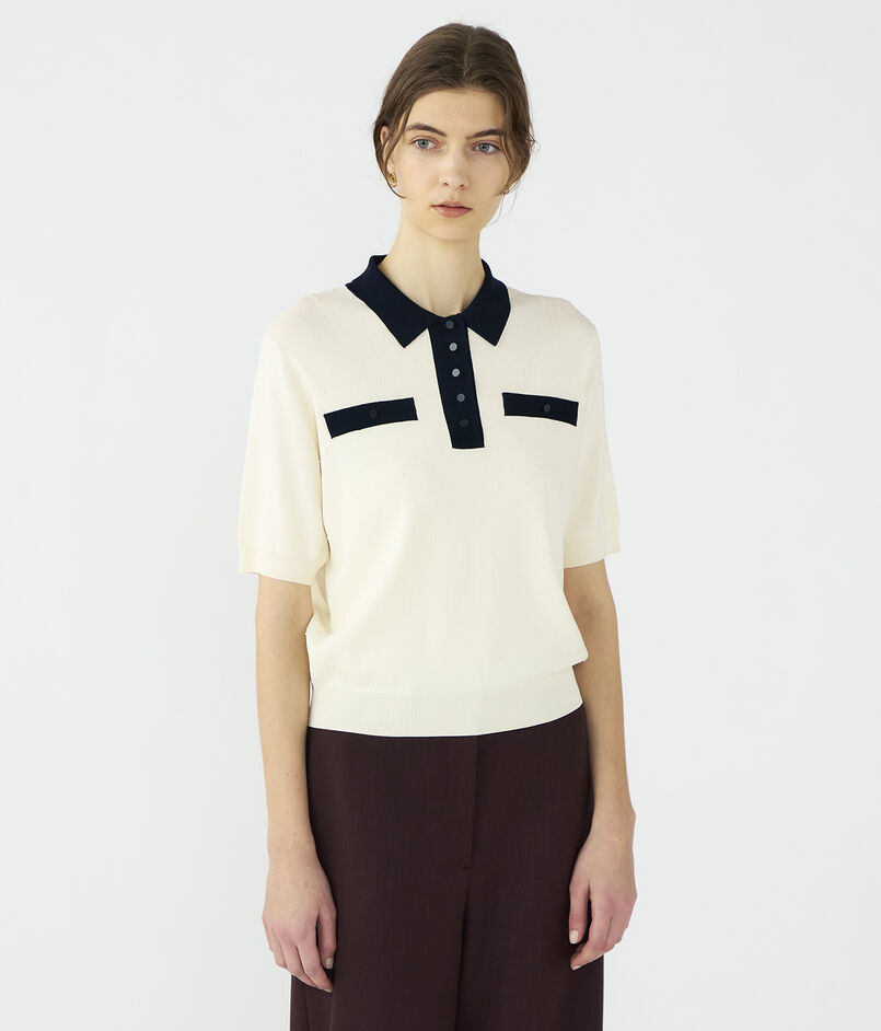 ポロプルオーバーはコンパクトな襟デザインにやや長めのハーフスリーブでクラシカルな印象の一着。