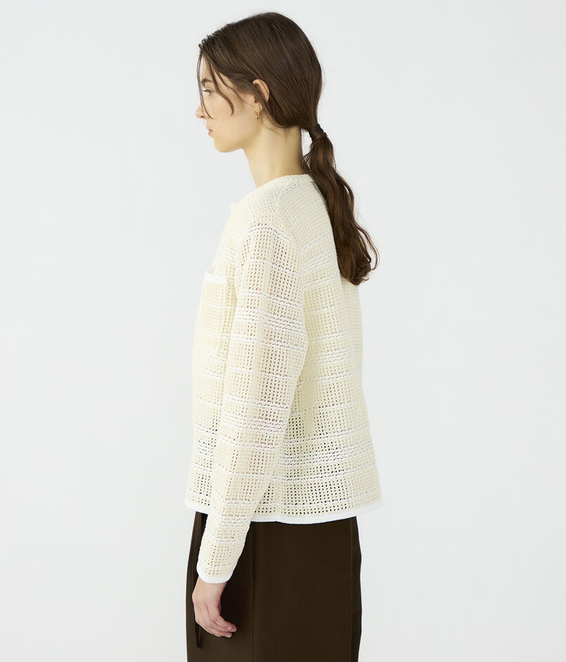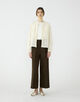 カーディガンはシンプルなデザインながら、着用した際に肩から袖山にかけてカーブするように、シルエットにこだわって仕上げています。