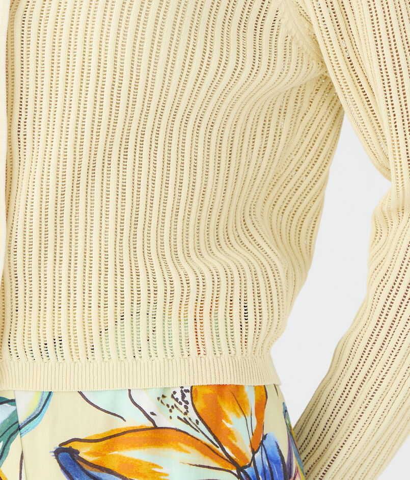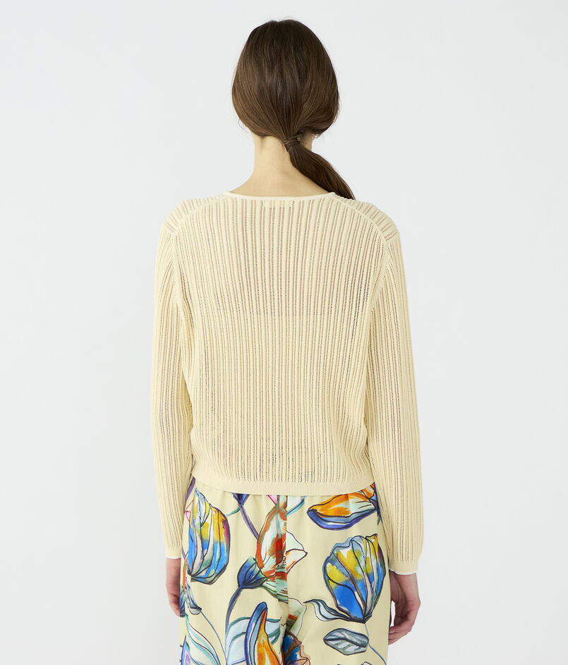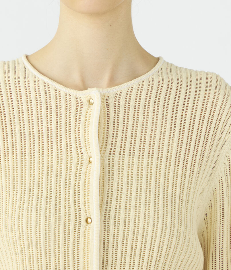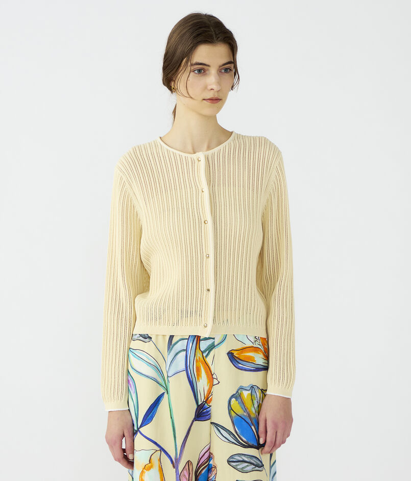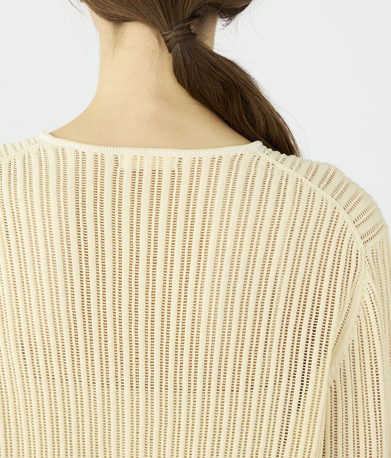 品の良い透けと抜け感のある編地が軽やかな印象のニットシリーズ。