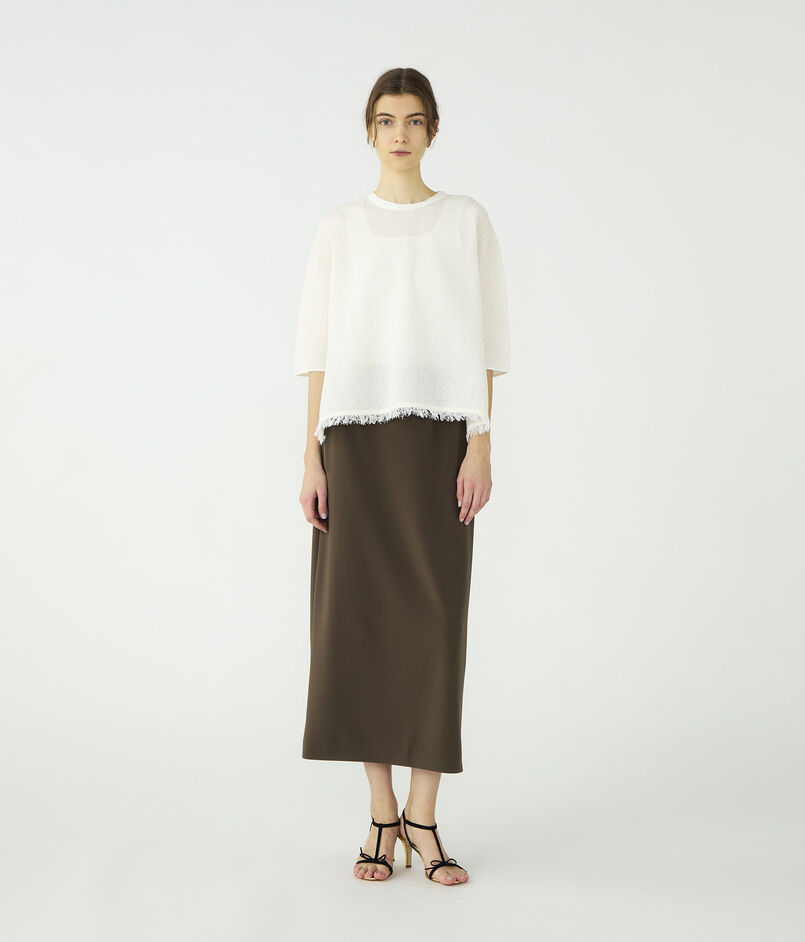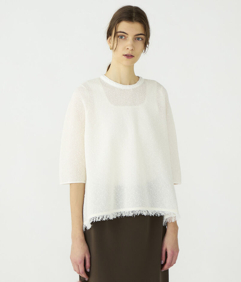 ワイドプルオーバーはほど良い透け感とハーフスリーブの軽やかなバランスがデザインポイントの一枚。