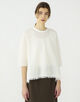 襟ぐりに配したブランドオリジナルの装飾テープや裾のフリンジディテールでアクセントをつけています。