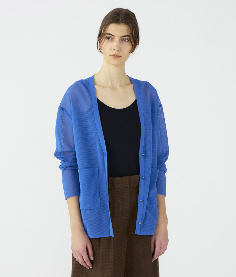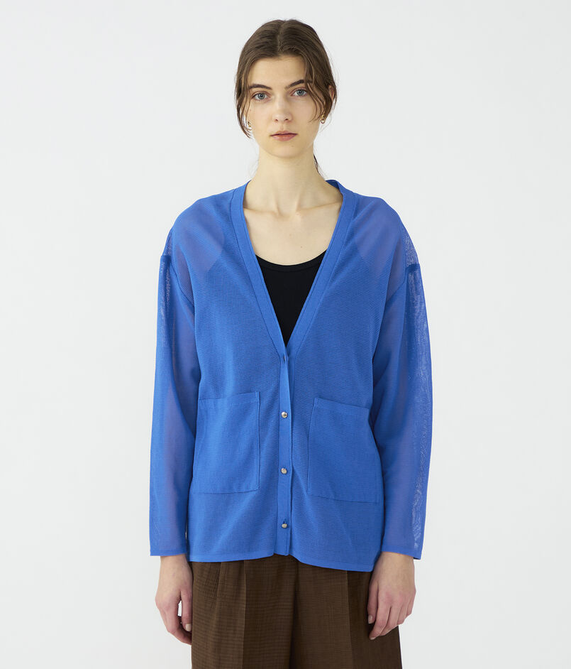 目が立った表情豊かな編み地が特徴的なニットカーディガン。