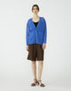 ベーシックに着回しのしやすいホワイトとブラウン、着こなしのアクセントとなるブルーの3色展開です。