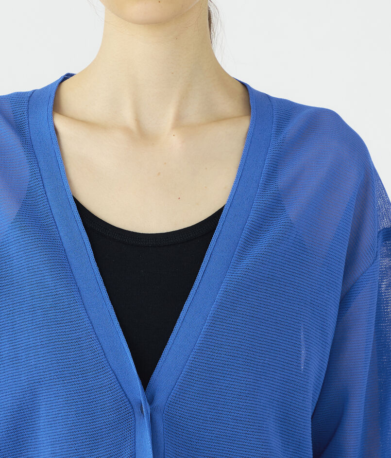タンクトップやキャミソールに重ねて、繊細な透け感を楽しむヘルシーな着こなしはもちろん、ワンピースの上にさらりと肩掛けしたエレガントなスタイルもおすすめ。